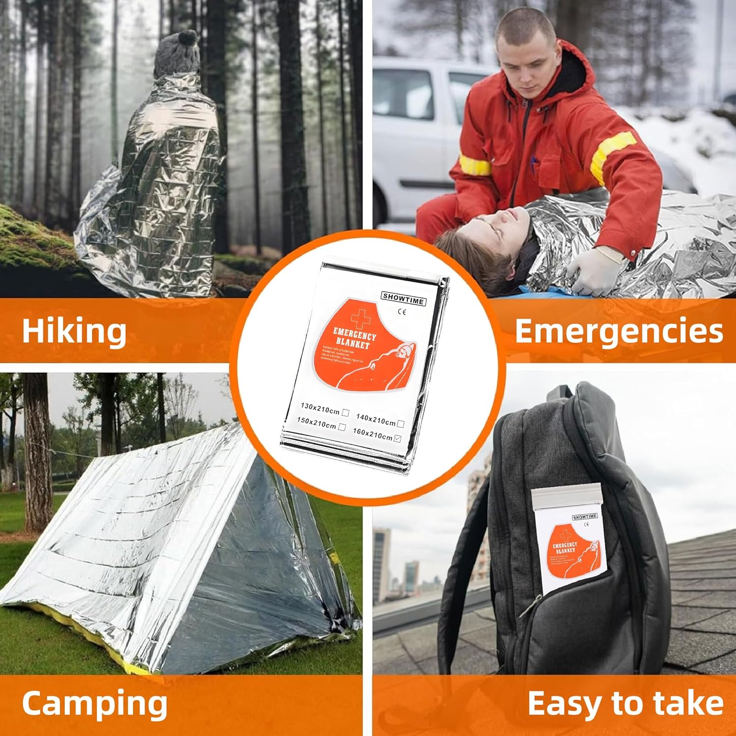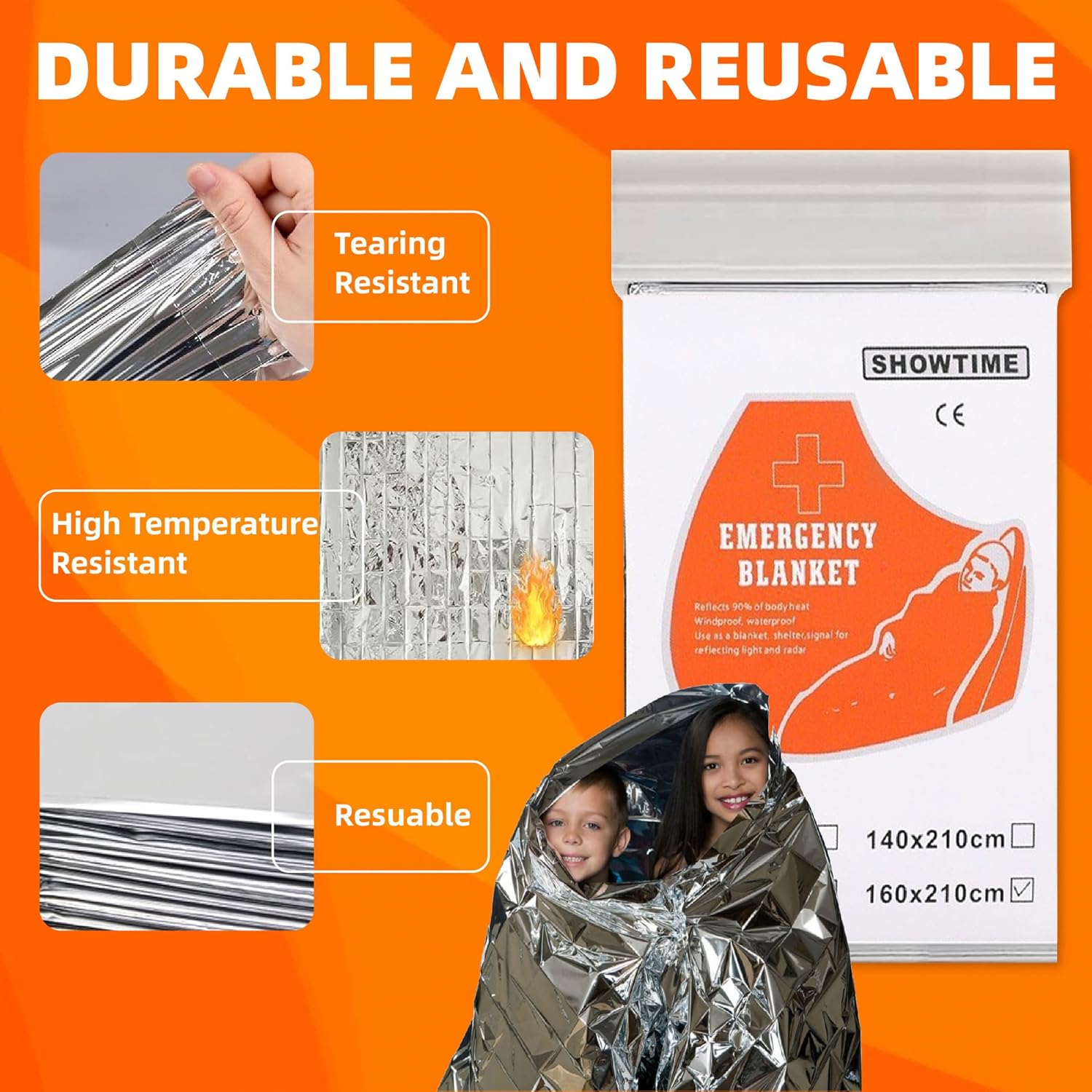 BEST QUALITY–Durable and advanced aluminized dual-sided emergency mylar thermal space blankets, survival blanket,waterproof and windproof ,it retains up to 90% of your body heat. Perfect for First Aid Kit, bug out bags, go-bags, and home/auto emergency kits.