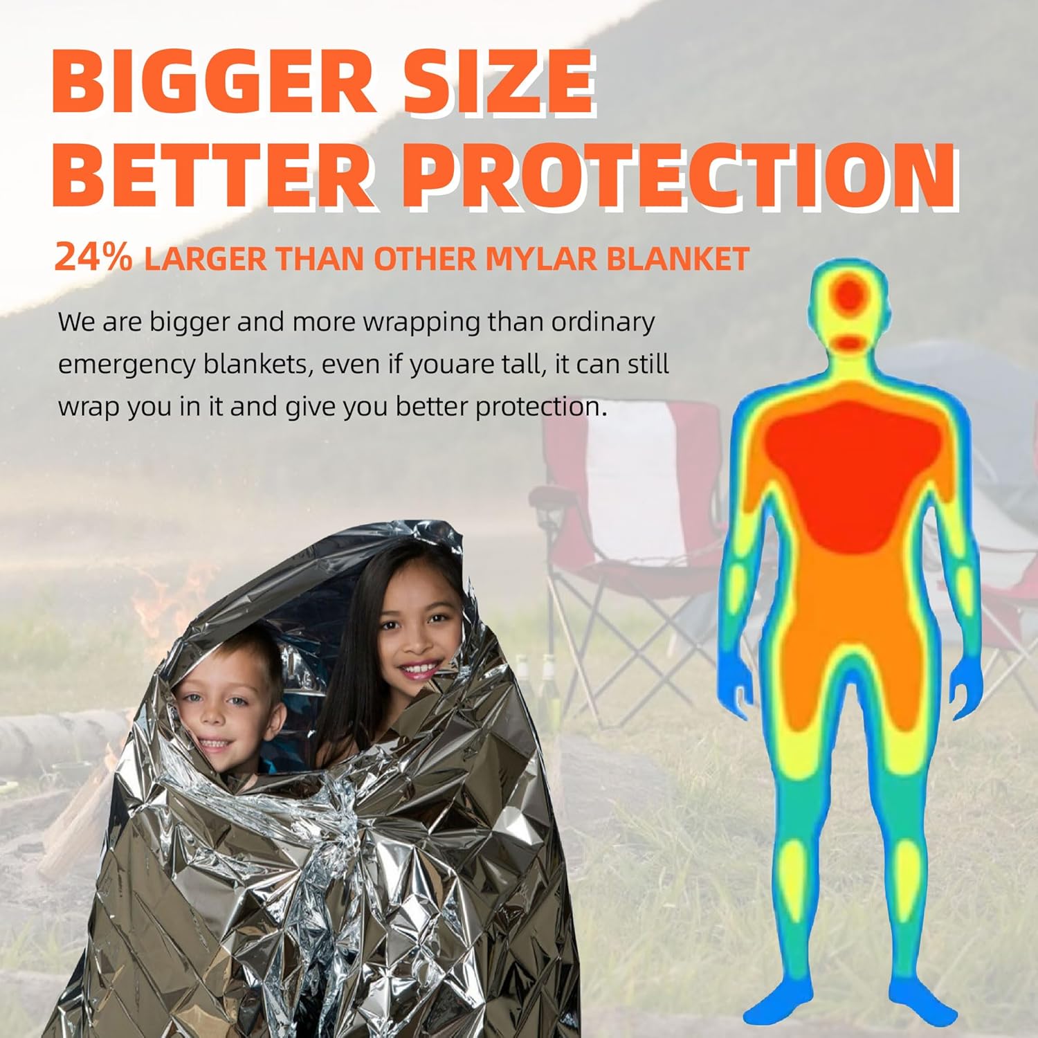 BEST QUALITY–Durable and advanced aluminized dual-sided emergency mylar thermal space blankets, survival blanket,waterproof and windproof ,it retains up to 90% of your body heat. Perfect for First Aid Kit, bug out bags, go-bags, and home/auto emergency kits.
