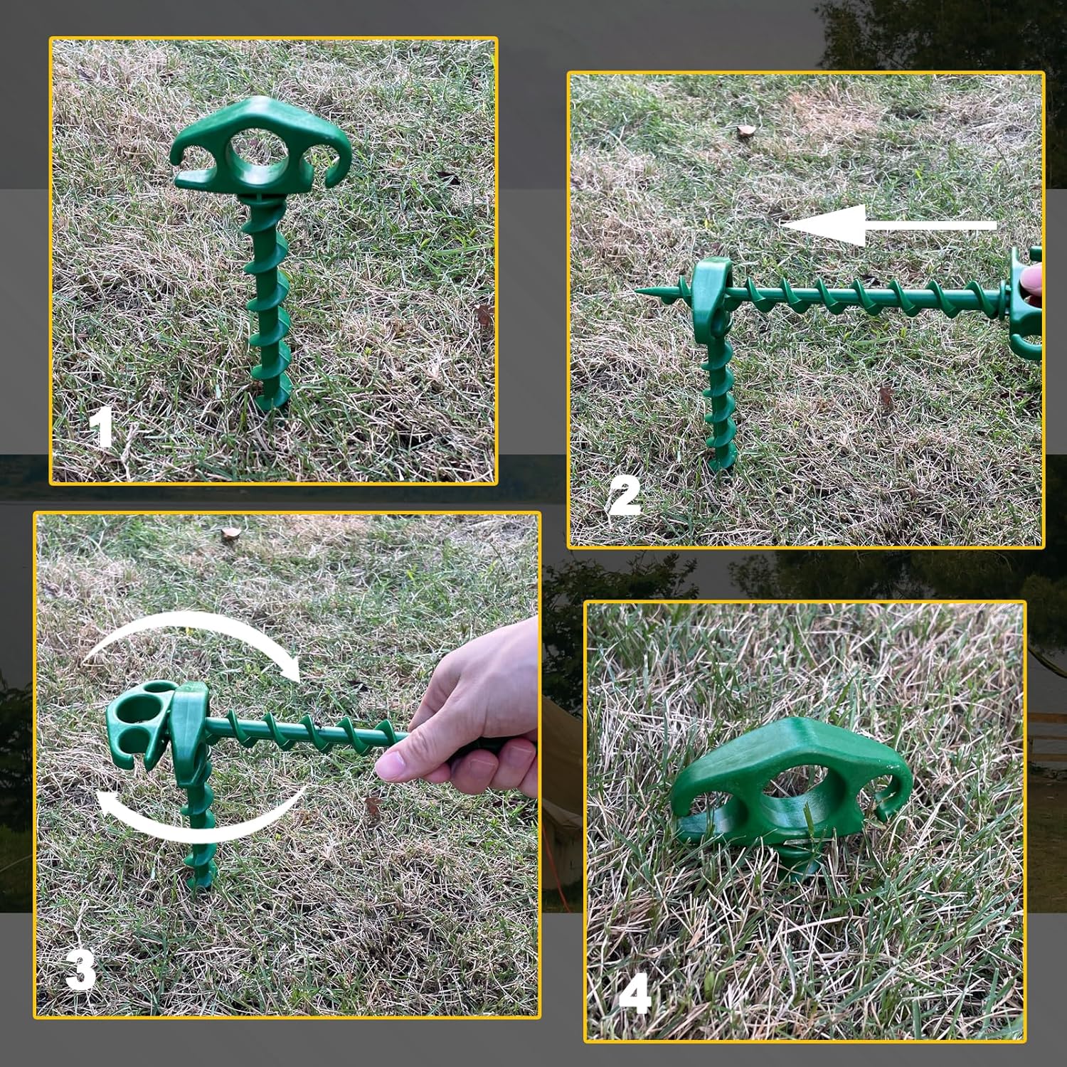 Lightweight and Easy to Carry: Each plastic spiral ground anchor measures 9.4” in length with a 0.79” diameter, weighs about 1.7 ounces, easy to store in your camping backpack for future projects. that are ideal for outdoor activities like camping, hiking, and beach trips.