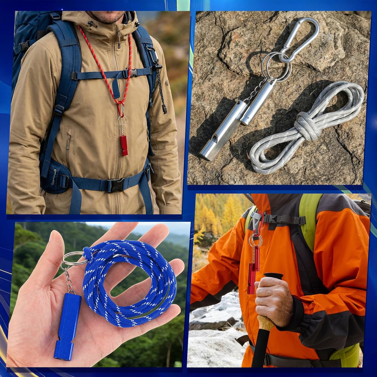 【Complete Set】This emergency whistle kit includes 6 aluminum whistles, 3 paracord lanyards, and 3 whistle keychain. Ideal for outdoor activities like camping, hiking, and survival situations.