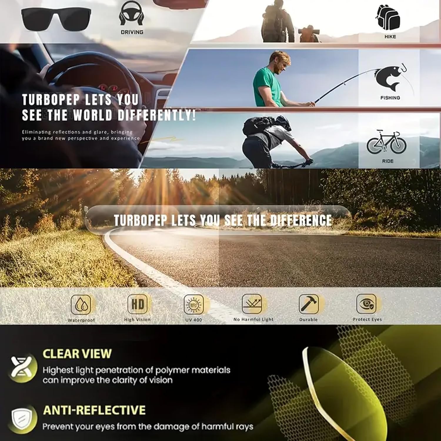 The video showcases the product in use.The video guides you through product setup.The video compares multiple products.The video shows the product being unpacked. Polarized Driving Sunglasses Merchant Video