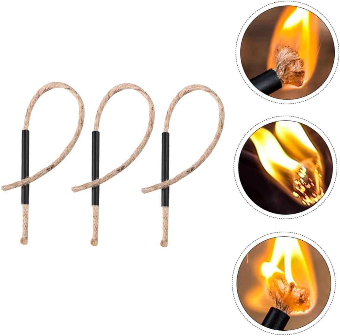 Wax wick: 3pcs survival wick cord fire starter rope matchstick jute wax cord fire tools for starting fires camping hiking backpacking