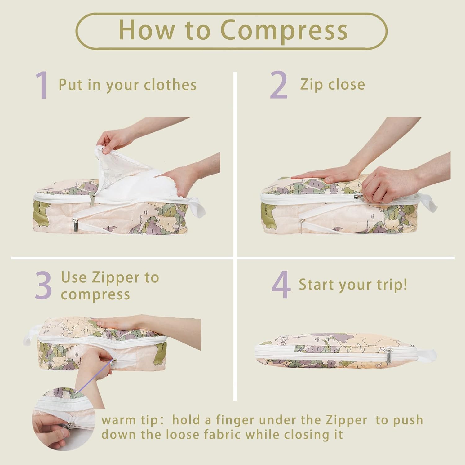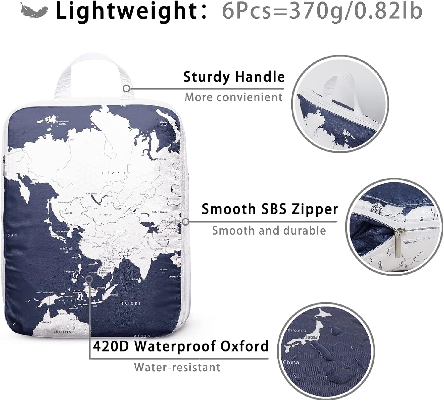 Multi-Functional Compression Packing Cubes: Lightweight, waterproof, portable, foldable, easy to store, suitable for most airlines’carry-on luggage, handbags, weekend backpacks, duffel bags, etc., perfect for family vacations, business travel, holidays, hiking, camping, RVing, and traveling.