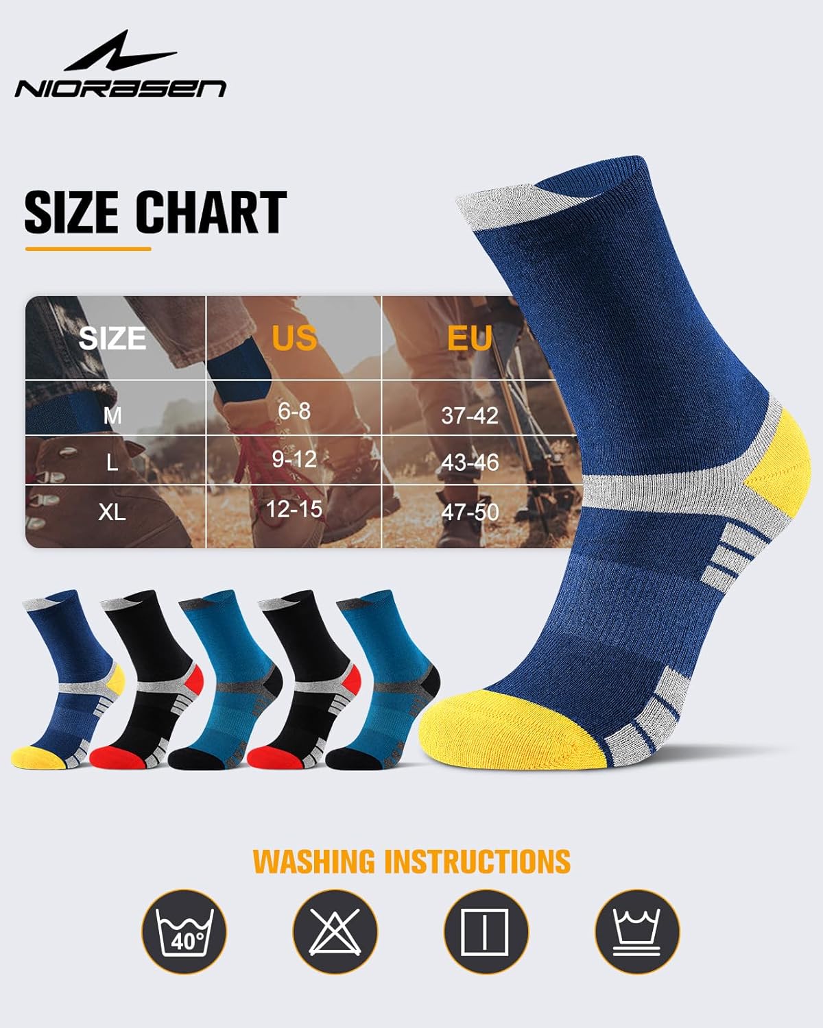 Versatile for Any Occasion: These multicolor mid-calf socks size 9-11 are designed to seamlessly transition from the gym to the office. With a classic, athletic look that pairs well with sneakers or boots, these hiking socks are the perfect choice for anyone.