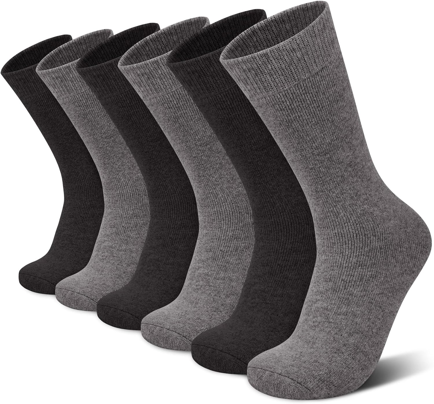 Stylish stripe and diamond patterns in versatile shades like navy, brown, and gray bring a polished touch to your wardrobe, pairing effortlessly with both dress shoes and boots. A fully cushioned footbed adds cloud-like softness, while the thickened design gives these warm crew socks subtle texture without bulk.