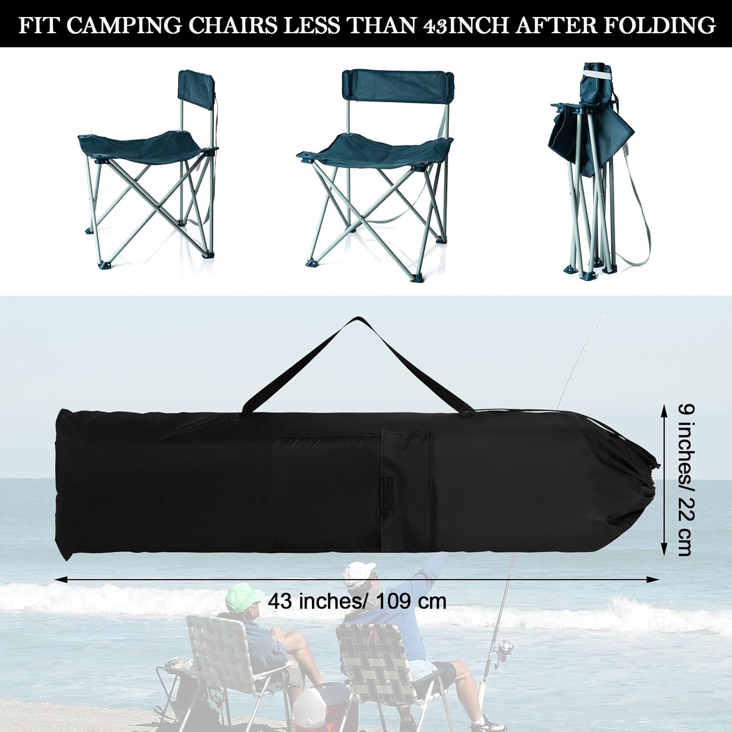 Large Size for Standard Camp Chairs: with a size of approximately 43 x 9 inches/ 109 x 22 cm (L x D), our large folding chair carry bag is designed to fit most standard camp chairs; It provides ample space to hold your chair securely, ensuring a comfortable way to carry your camping equipment