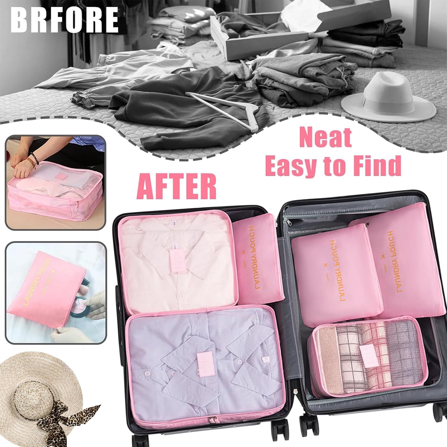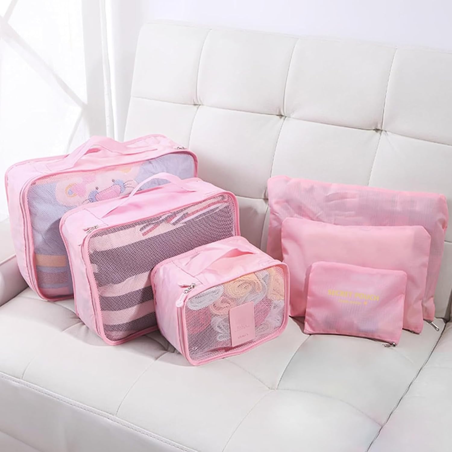 The 6 set packing cubes provide ample space for all your travel essentials. With different sizes and compartments, you can easily separate your clothes, accessories, toiletries, and more, allowing you to pack efficiently and maximize your suitcase space.
