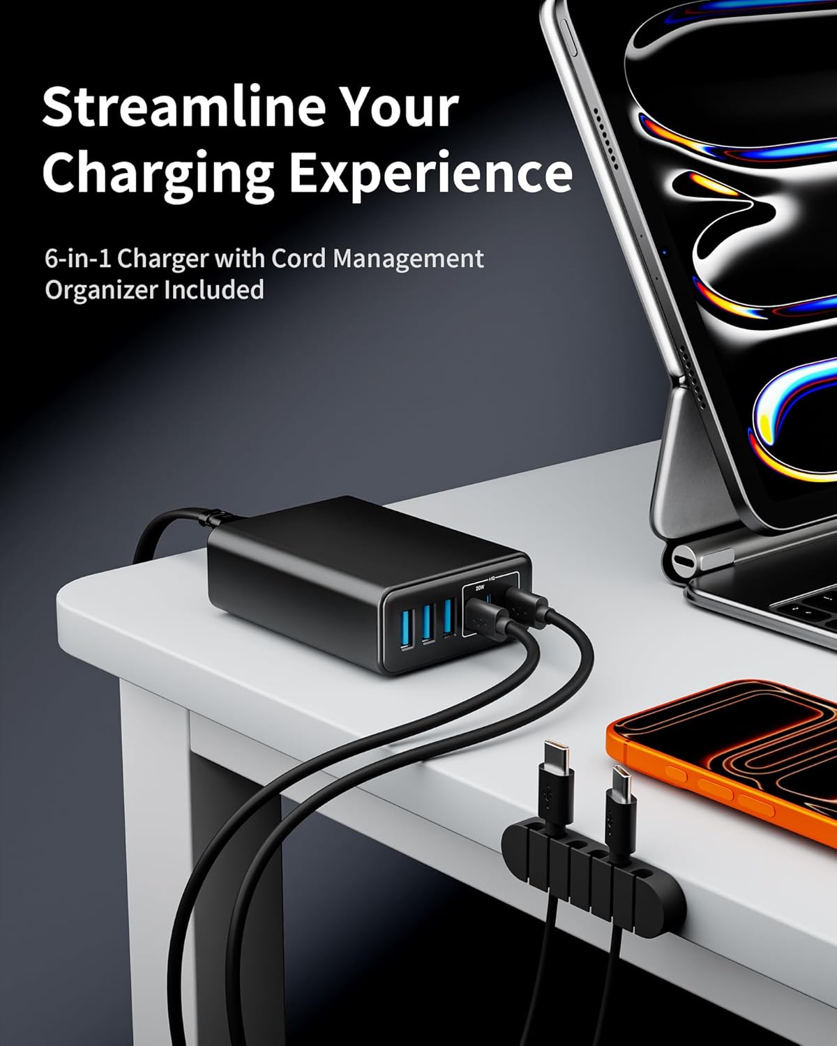 ⚡【Tidy Desk, Tidy Mind】Organized Workspace, Clear Mind. Eliminate cable chaos and desk clutter. The included silicone cable organizer helps keep your workspace neat and stress-free.