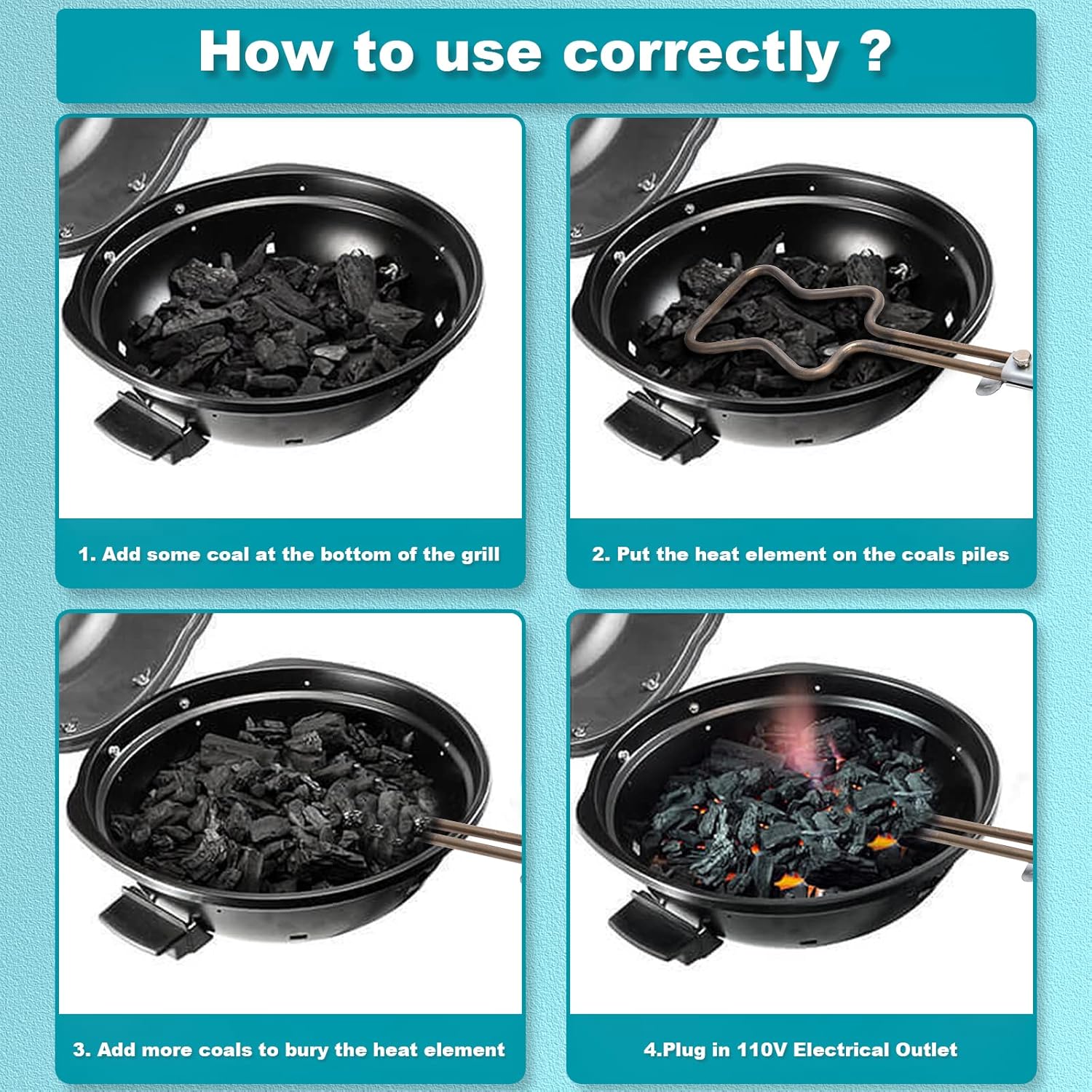 Powerful and Reliable Electrical Coal Burner: Designed to provide continuous heat for coals and ignite them within a few minutes. It is simple and easy to use. Just insert the heat elements into the coal pile. Only wait 8-10 minutes. Easy, Quick, and Efficient