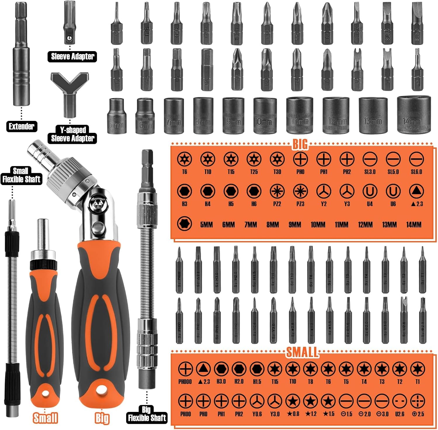 【Screwdriver Multitool Set】: Multiple models of screwdriver bits and sockets for repairing most products.