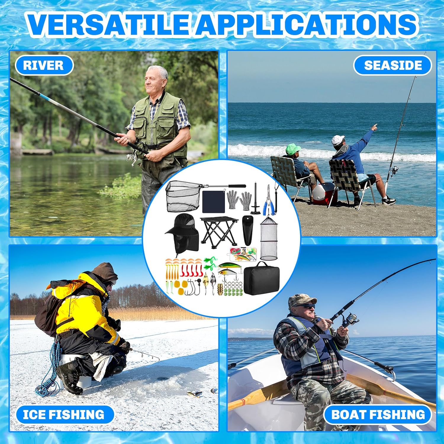 Comprehensive Fishing Kit: this set includes a fishing travel tote bag, a hat, a pair of cut-resistant gloves, a towel with a hook, a folding chair, bait accessories and fishing line, a scoop net, a fish cage, a pair of scissors, a keychain, a fish lip clip, fishing pliers, and a small storage bag; It covers all the essential tools, meeting your everyday needs and significantly saving your effort