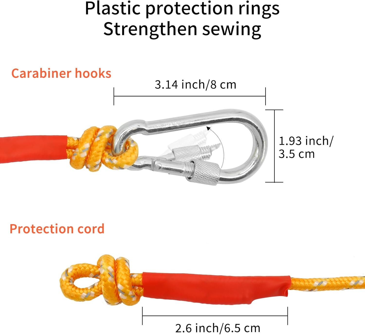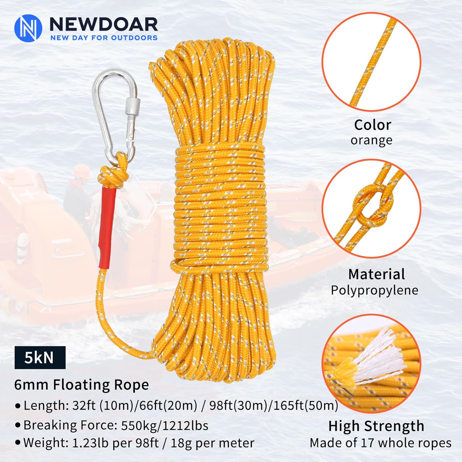 High-strength polypropylene material – strong and durable, high strength, low elongation, ultimate tensile force: 1.5KN (330lbs/150KG)can float on the water, we recommend that you use it on boats less than 30 feet in length.
