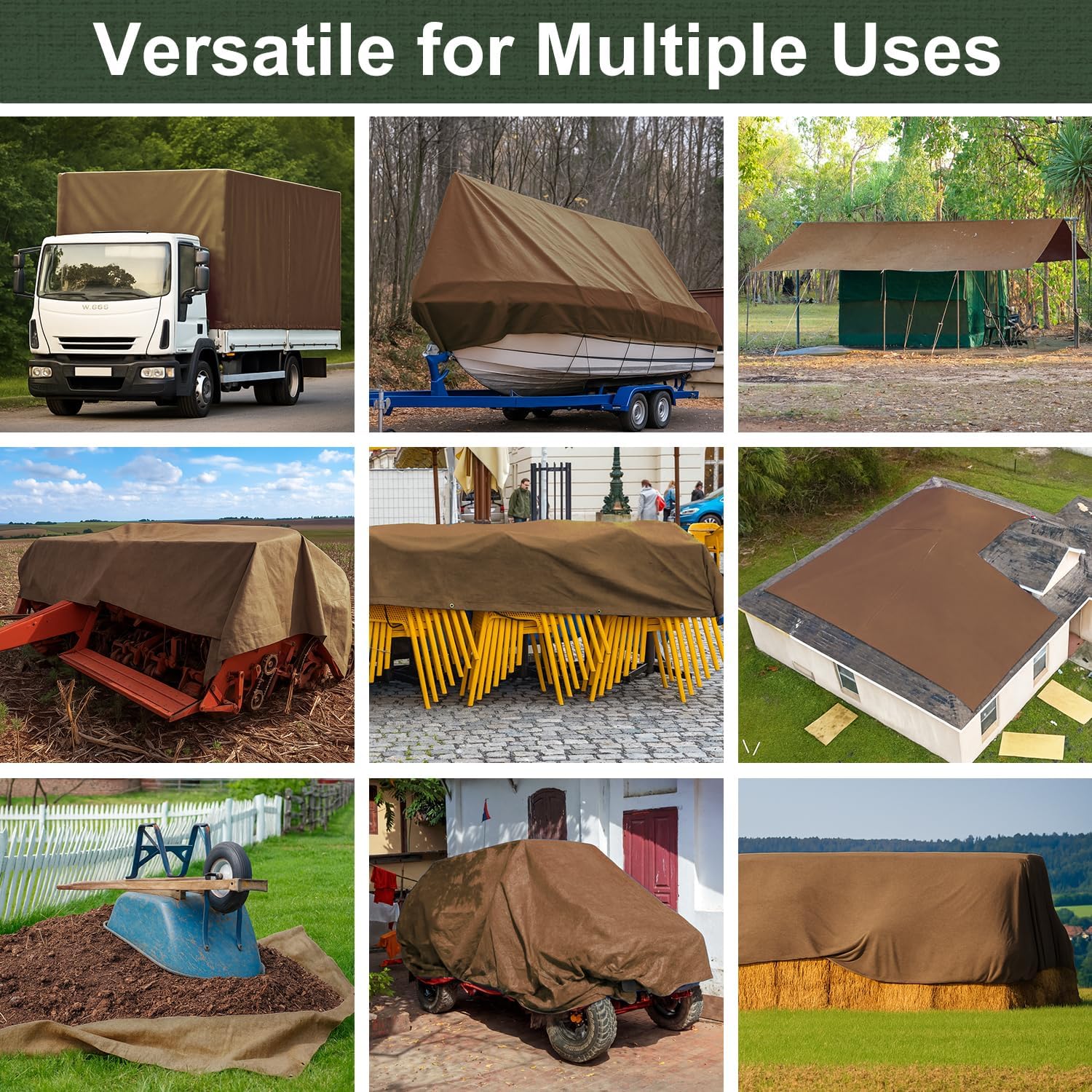 ALL-WEATHER PROTECTION: Designed to endure harsh conditions, this canvas tarp resists rain, snow, UV rays, and strong winds; waterproof design ensures reliable protection for equipment, furniture, and supplies