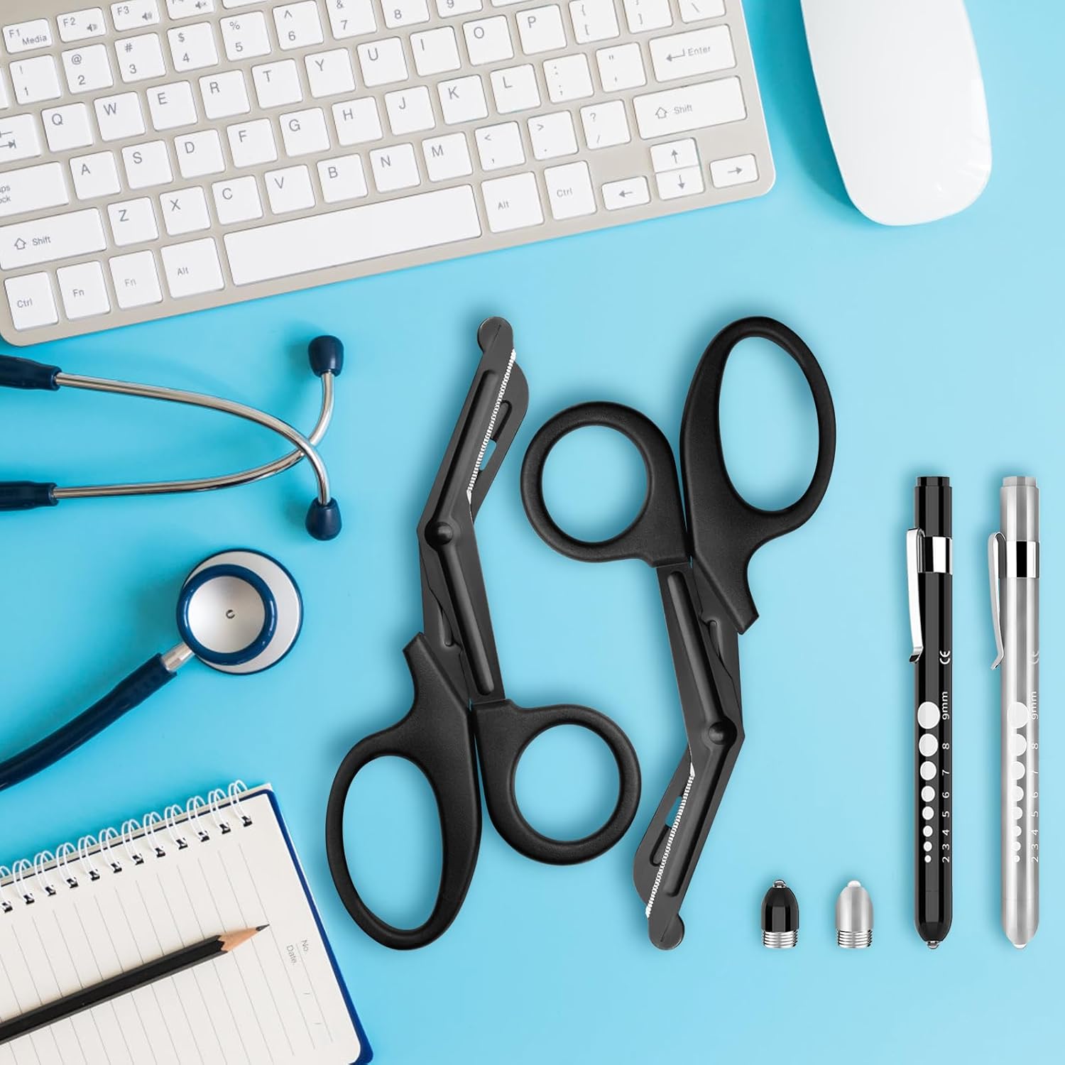 Perfect Medical Supplies Kit: The Set Contained 2 pack medical pen lights (with 2 replaced pen head) and 2 pack trauma shears medical scissors. These medical assistant accessories are necessary for nurses, doctors, dentist, veterinarian. Suitable for hospitals, medical offices or homes and so on. Note: Batteries were not included.