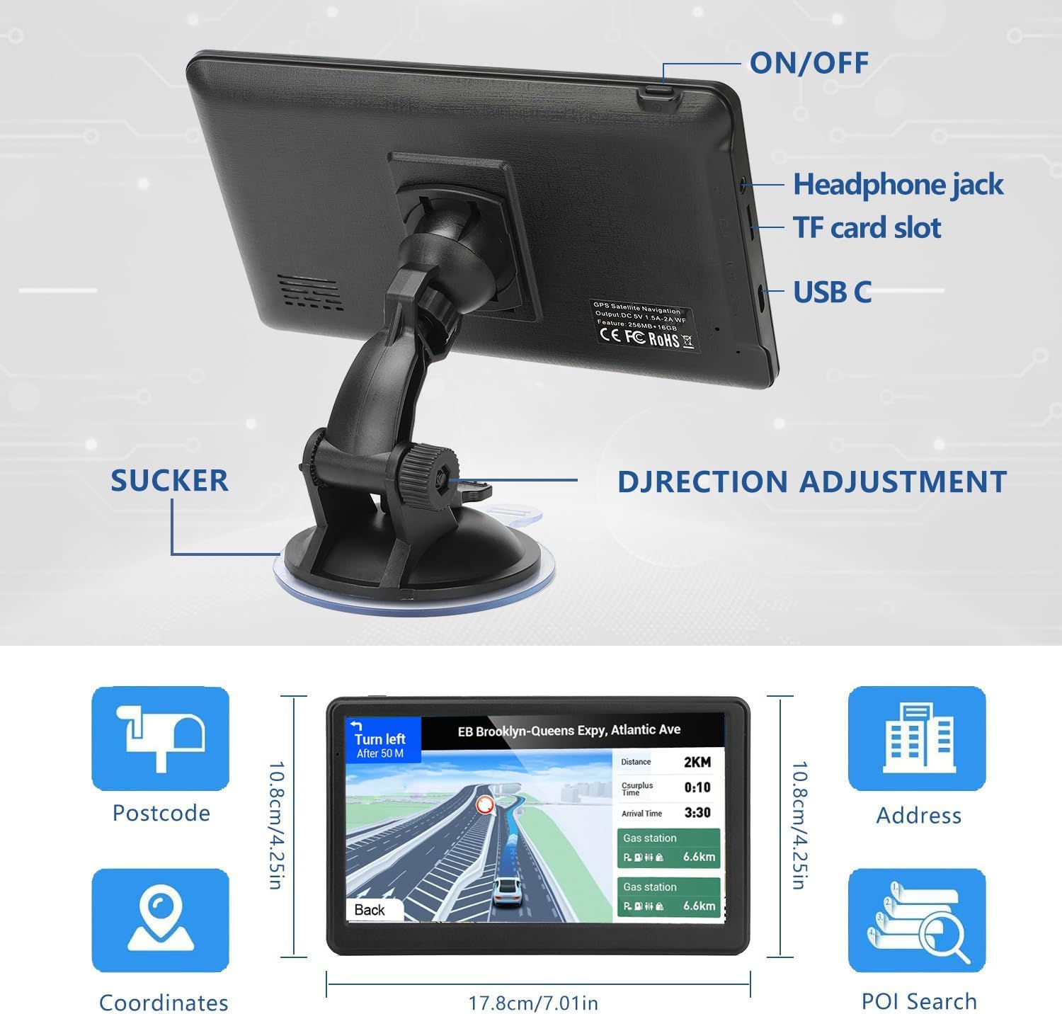 Introducing the ultimate touchscreen experience with our state-of-the-art capacitive screen technology. Say goodbye to frustrating delays and inaccuracies with traditional touchscreens, and welcome a whole new world of precision and speed.Lifetime map updates: 2D/3D map views, no internet connection required, ready to use, all North American country maps are already pre-installed.Multi-language: Our GPS navigation system is designed to support multiple languages, making it the perfect choice for travelers and multilingual households. The easy-to-use interface and voice-guided directions can be customized to your preferred language, ensuring a hassle-free and enjoyable experience.Vehicle Points of Interest: Explore new places and discover hidden gems with our advanced GPS navigation system that supports vehicle points of interest. With our device, you’ll have access to a comprehensive database of points of interest tailored specifically to your vehicle, including gas stations, parking lots, restaurants, and more.7-inch gps navigation with stand: MRSXWPY truck navigation see directions clearly on a bright, sunlight-readable display.Multimedia: MPEG4, MP3, JPEG, AVI, WMA and other playable formats. 16GB RAM (expandable) and 256MB RAM. The device supports MicroSD data carriers (up to approx. 32GB).7 vehicle modes switching: Experience the versatility and convenience of our advanced GPS navigation system, which supports 7 vehicle modes switching. Whether you’re driving a car, truck, motorcycle, or any other vehicle, our device is designed to meet your needs and provide you with the most accurate and reliable navigation experience possible.Multiple search methods: by zip code, full address, partial address, directory, points of interest, favorite places to visit or previous search history (recent destinations).
