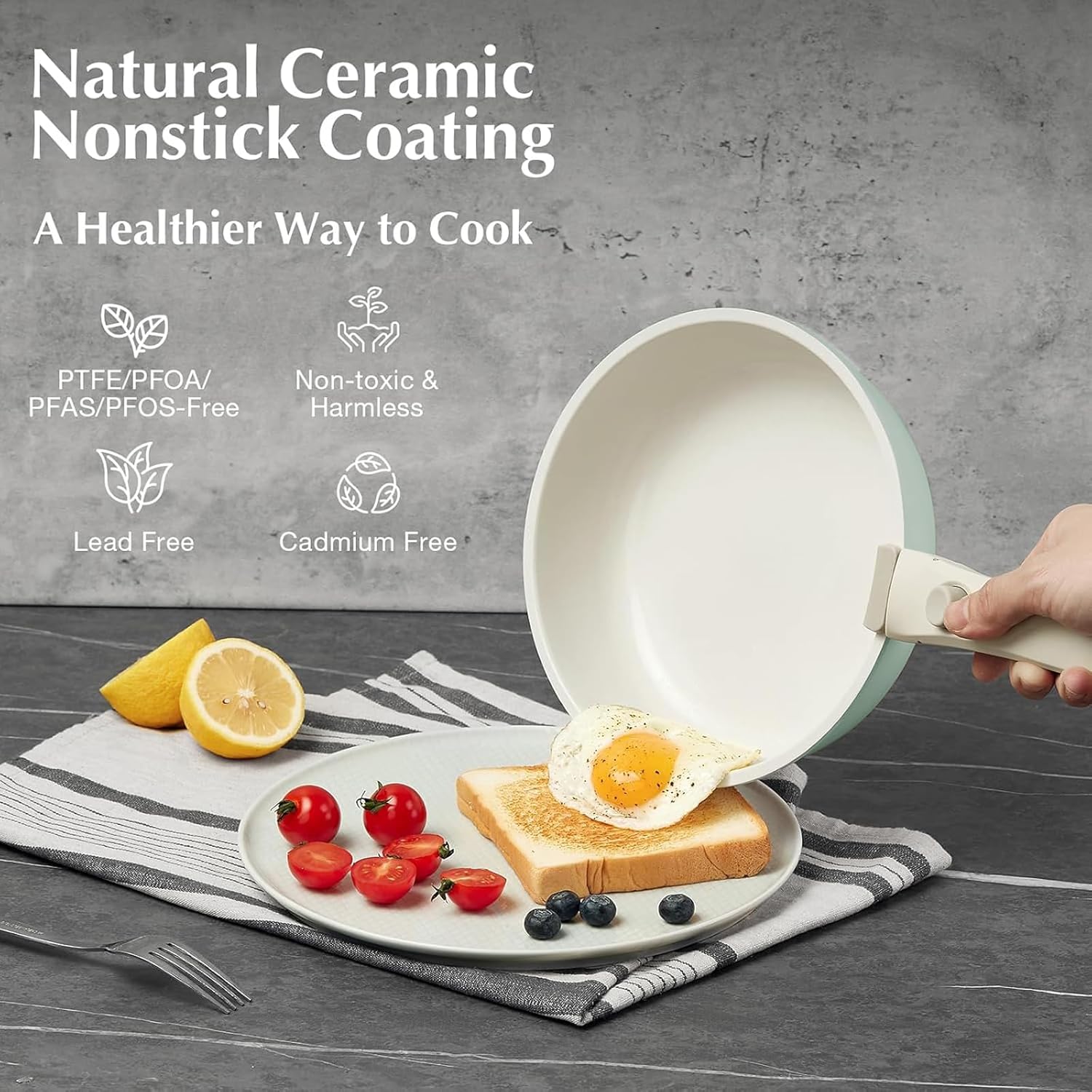 【Eco-Friendly & Easy to Clean】 The non-stick ceramic coating allows for quick cleaning with just a paper towel or rinse. Spend less time scrubbing and more time enjoying family meals or hosting dinner parties.