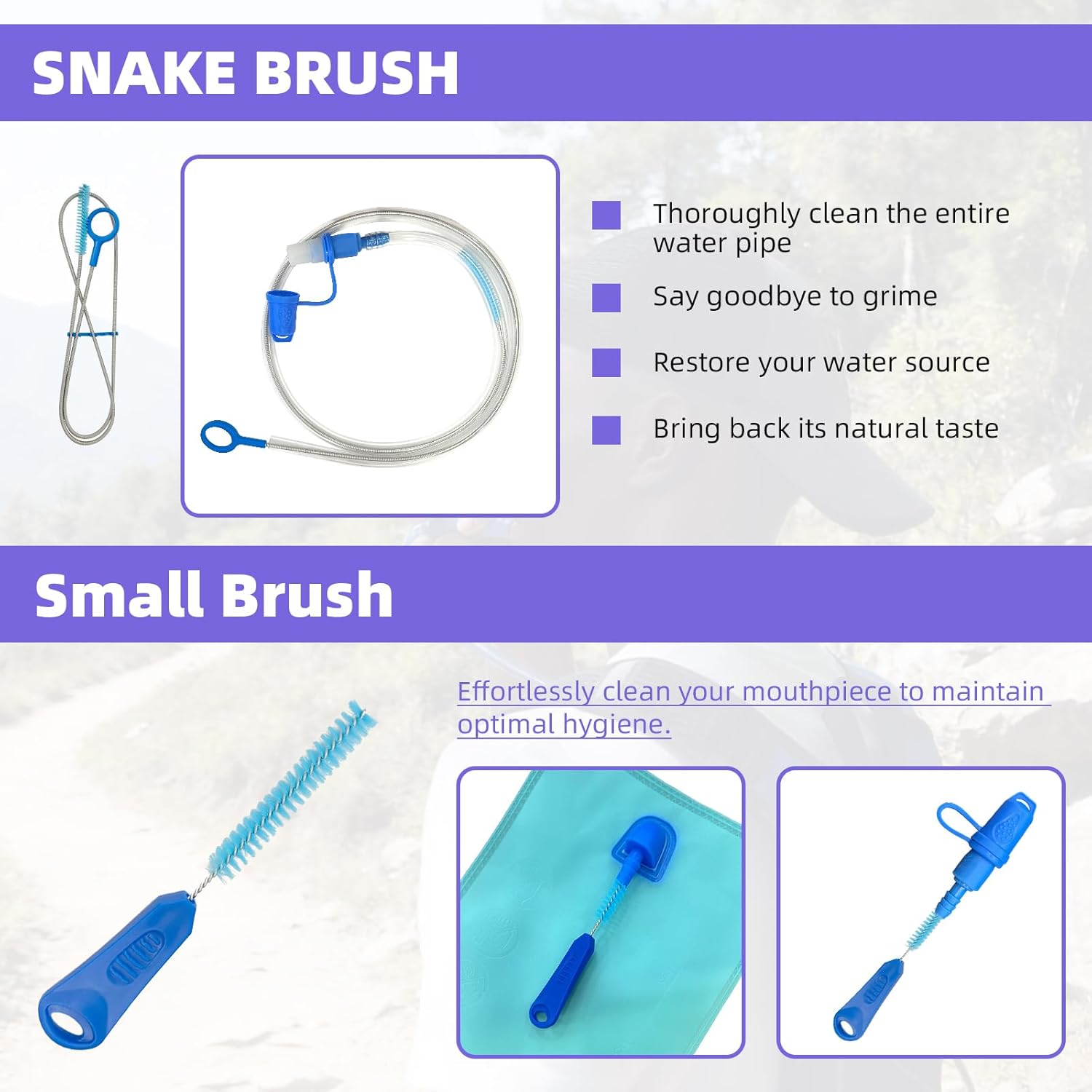 【User-Friendly & Multi-Scenario Use】The hydration pack cleaning kit is detachable for compact storage. Ideal for outdoor activities (hiking, cycling). Making it essential for outdoor enthusiasts.