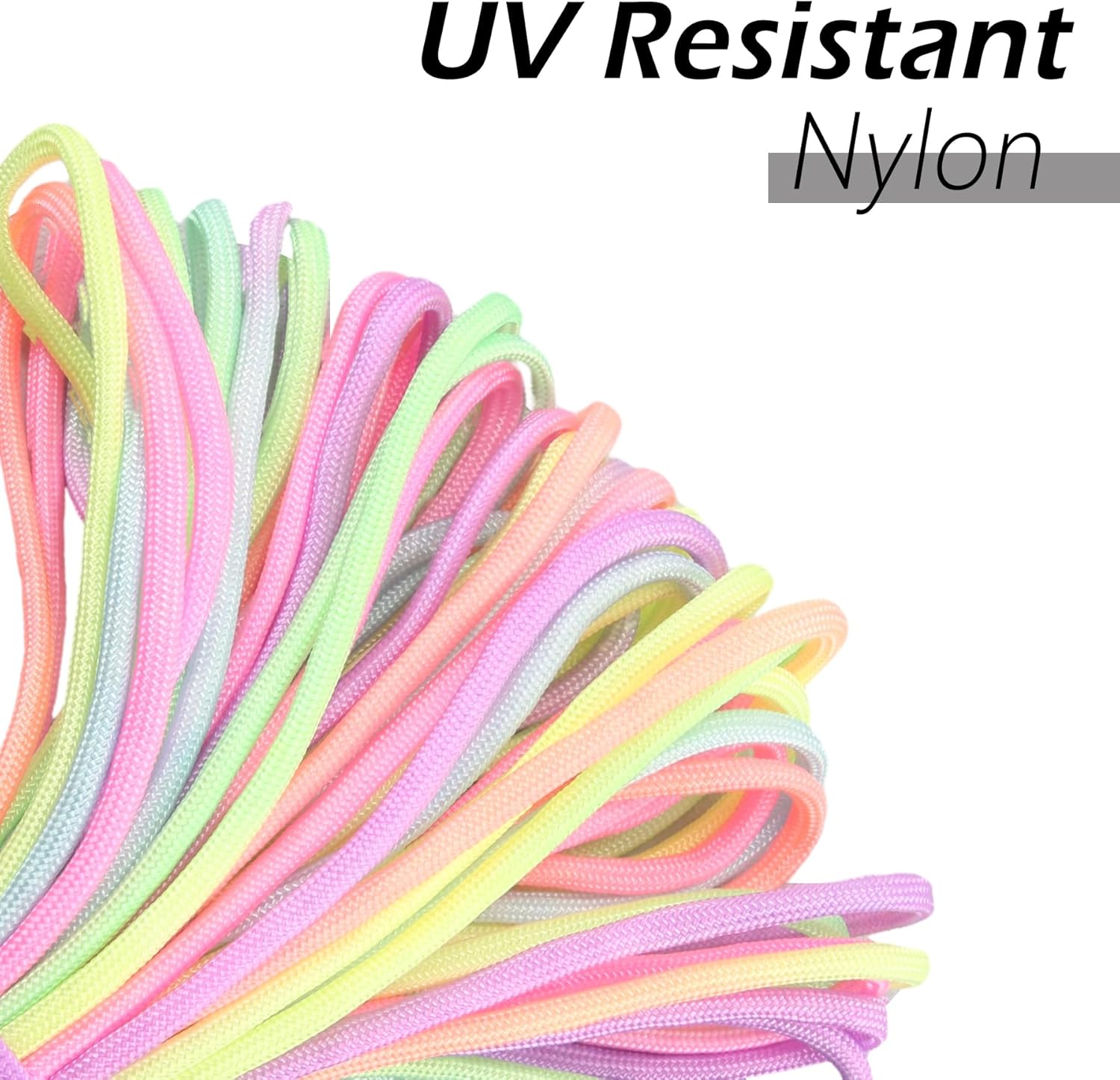 Versatile Usage and Compactness: This paracord is perfect for various outdoor activities, such as camping and hiking. It can be used to make paracord lanyards, bracelets, key chains, dog leashes, belts, and other decorative items. Its compactness makes it easy to carry and store.