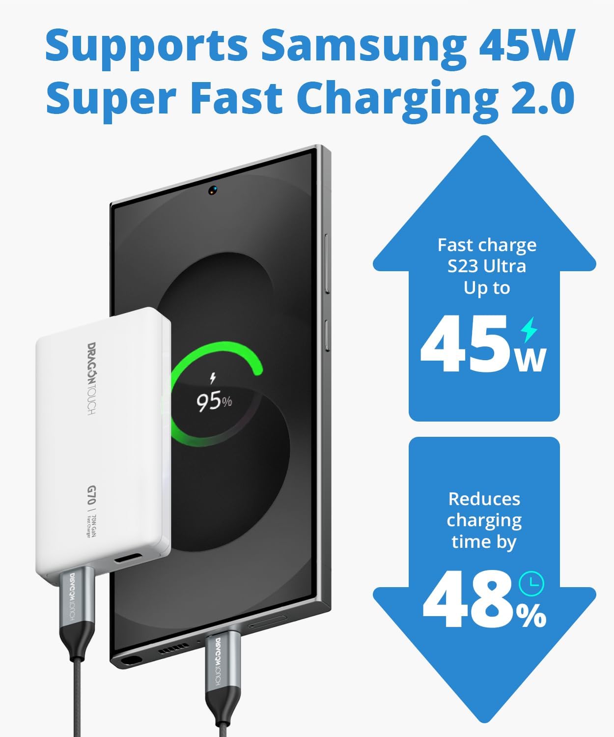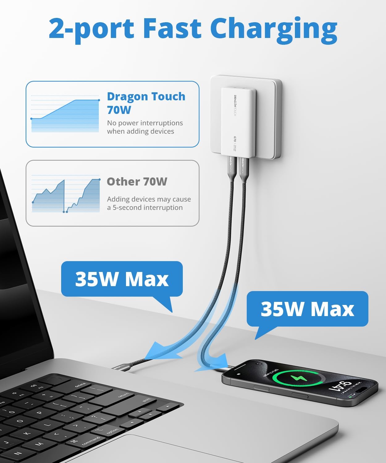 ENHANCED LONG-TERM DURABILITY: Crafted from high-quality materials, the G70 USB C Charger is equipped with overload and over-temperature protection. This ensures reliable, long-lasting performance for daily use