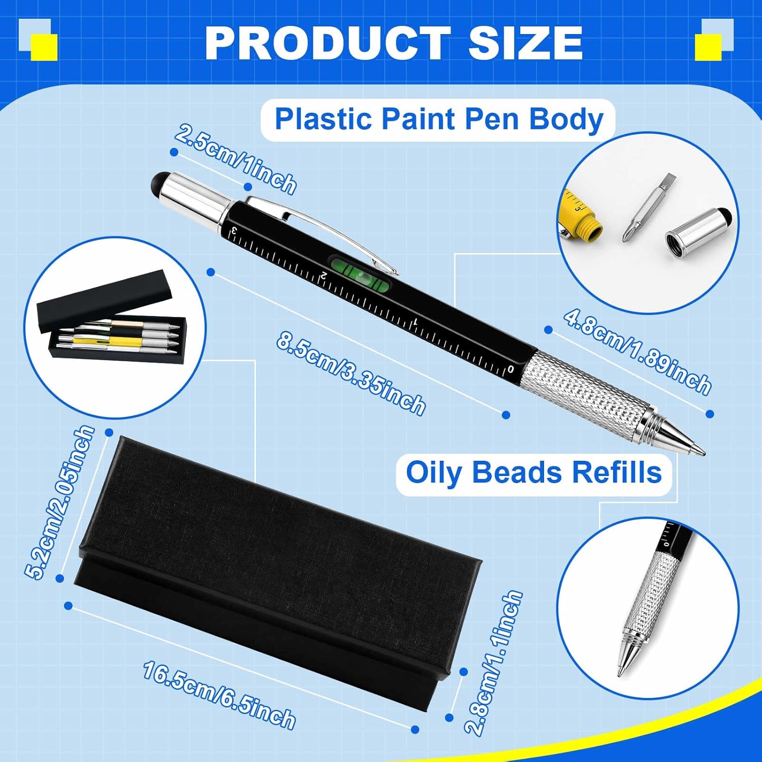 Multifunctional and Practical: the utility pen is designed with 6 handy functions, including a refillable pen, a level gauge, a ruler, slot and cross screwdrivers, and a touch screen stylus, convenient for you to use