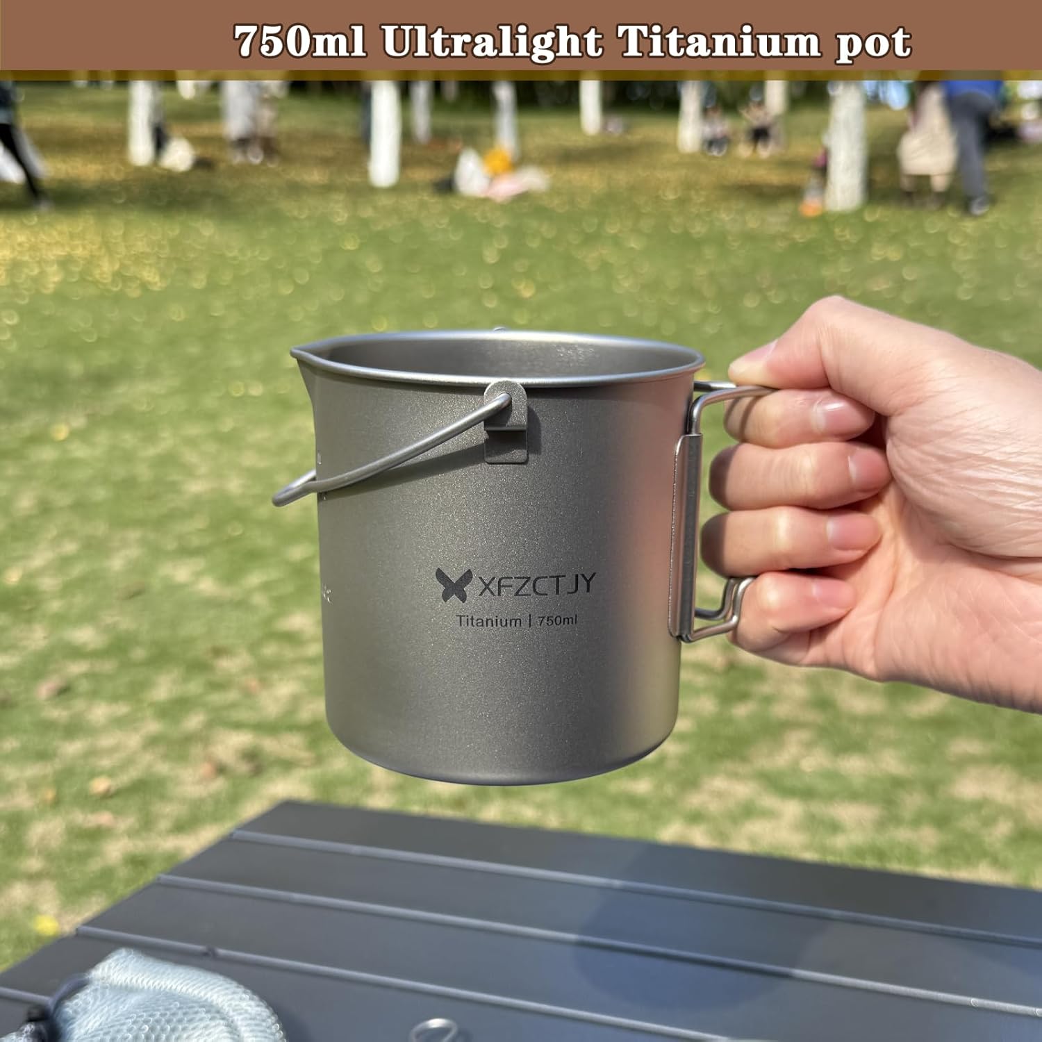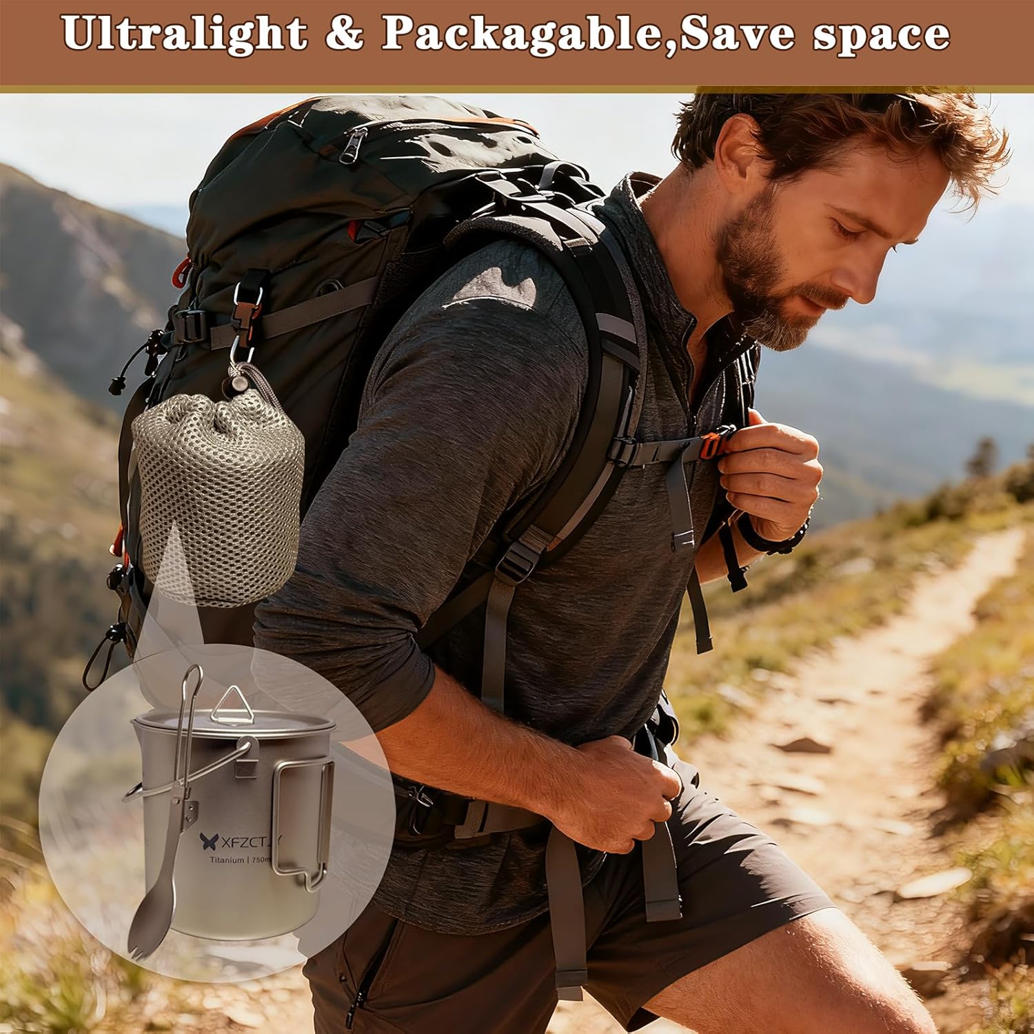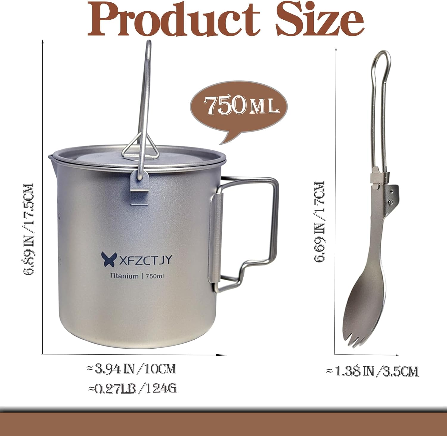 【Multi-Functional】The titanium 750ml pot with spork can be used for boiling water, cooking meals, reheating soup, melting snow or bowl. foldable handles and detachable bail is adaptable cooking styles, a true outdoor multitasker,it is ideal for solo adventures or duo hikes.