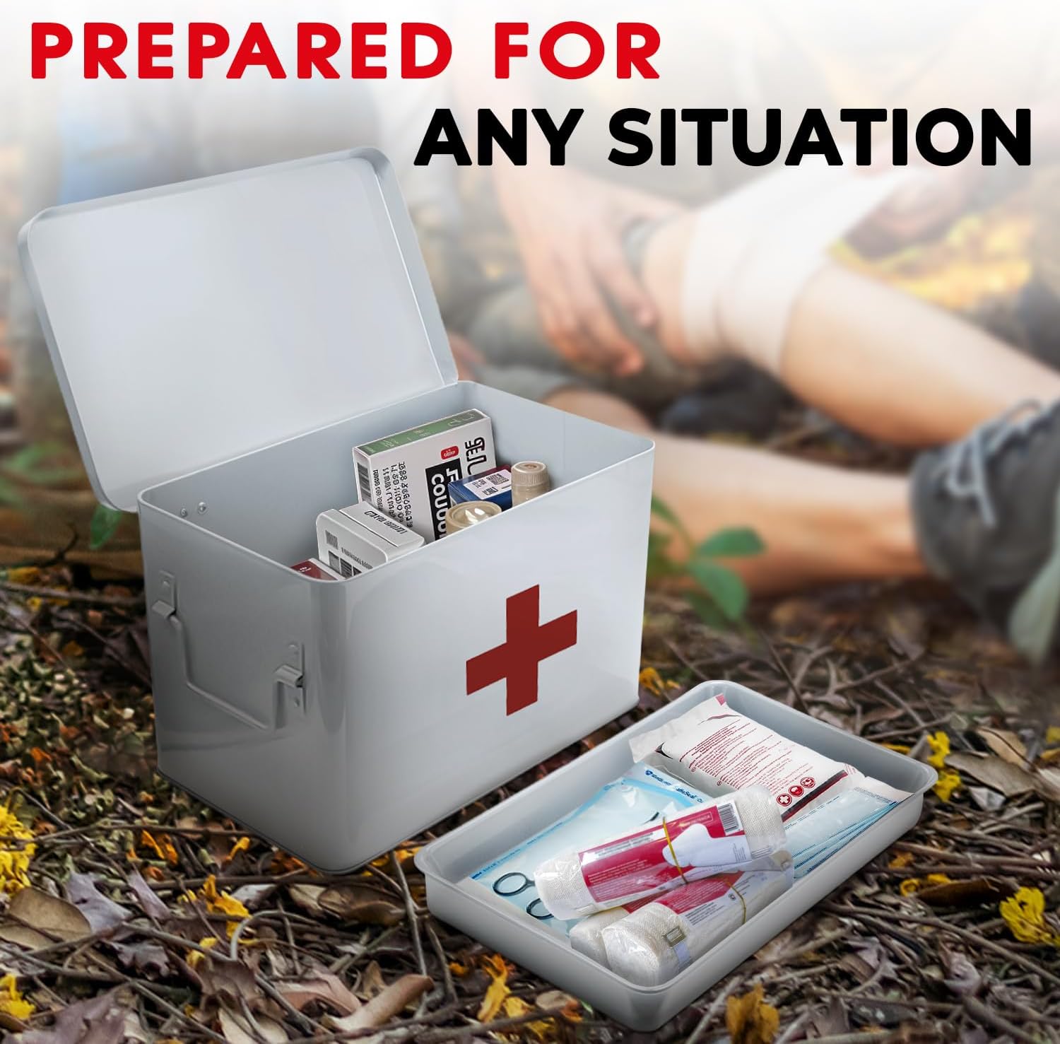 High Quality Material – Medicine storage bin made of sturdy metal ensures long-lasting durability, safeguarding your first aid and medical essentials.