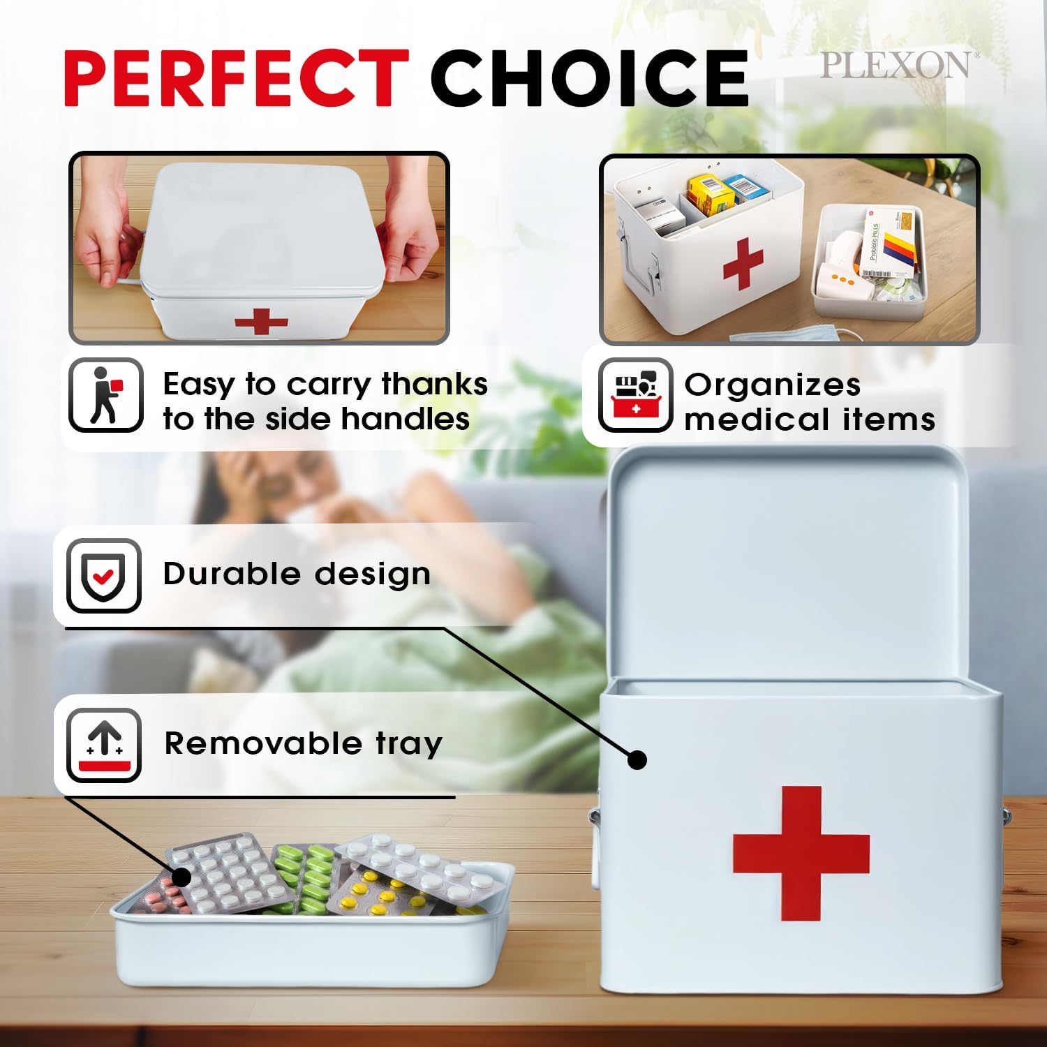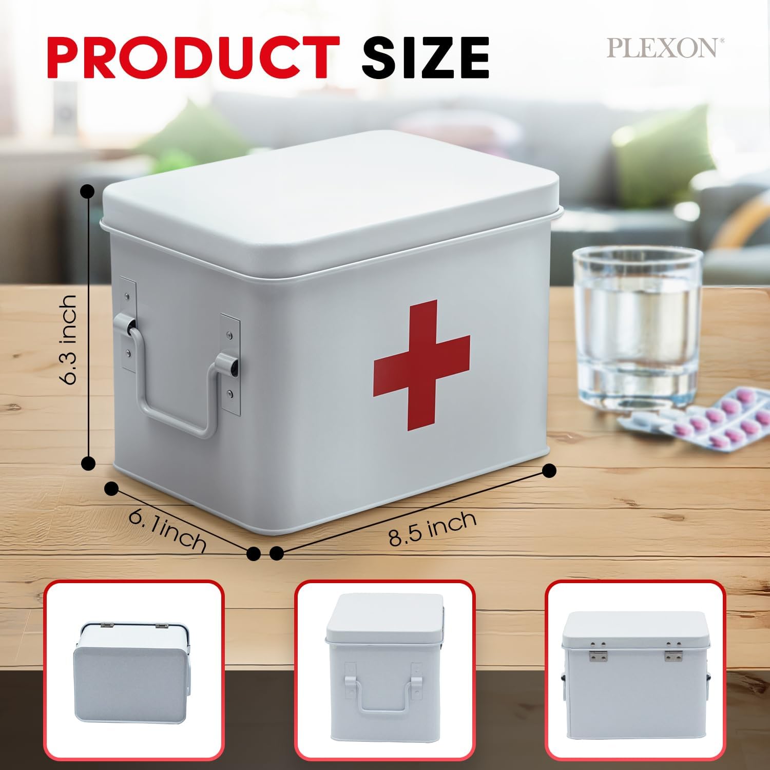 π₯Ύ Plexon First Aid Kit, First Aid Supplies Bin, 8.5″ Metal Medicine Storage Box with Lid, First Aid Kit Box Organizer, White β Review, Key Features & Current Price