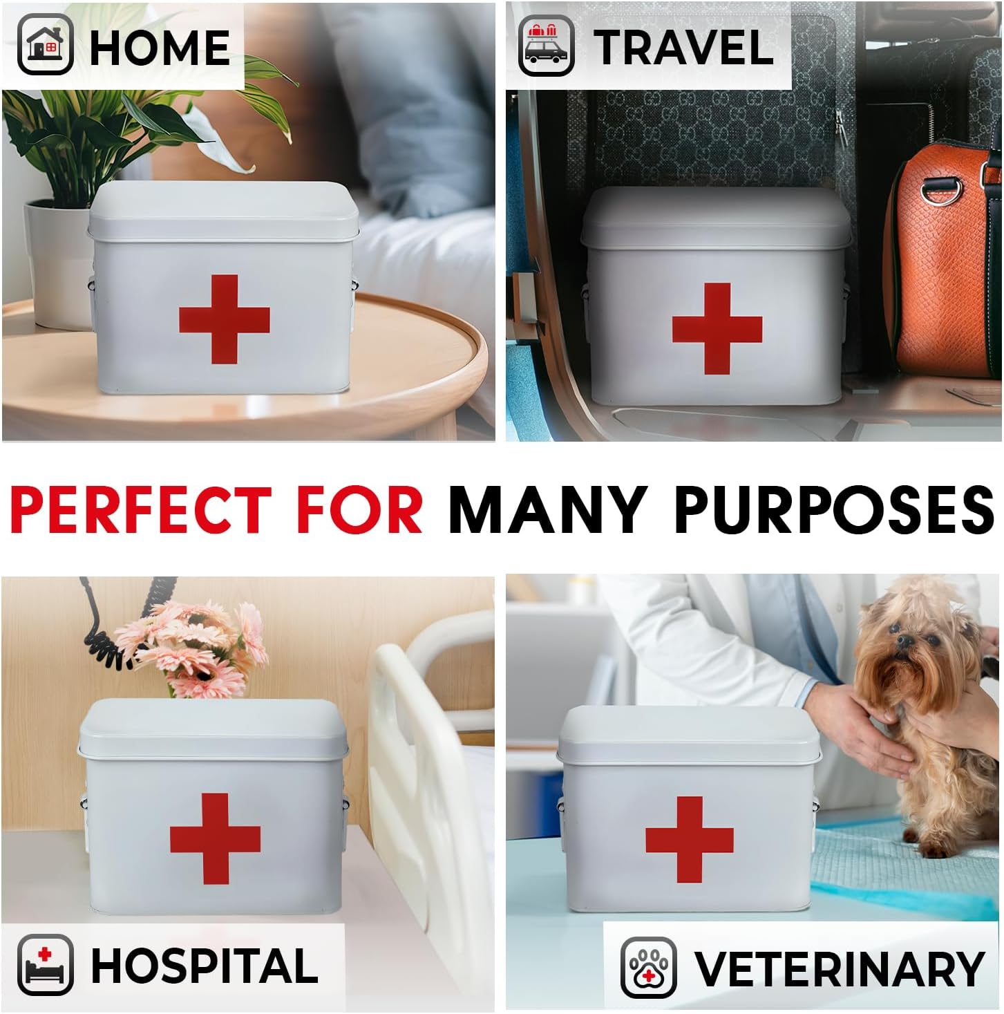 High Quality Material – Medicine storage bin made of sturdy metal ensures long-lasting durability, safeguarding your first aid and medical essentials.