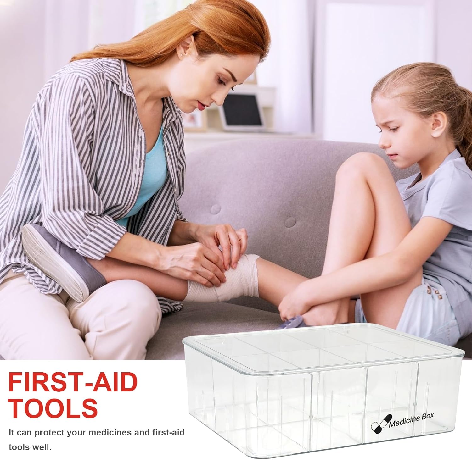 SEE-THROUGH,STRESS-FREE: No more rummaging around! Our pill box design allows for quick identification of contents, saving time and eliminating the guesswork in locating your essential items,Find smaller items like a band-aid, adhesive tapes, medicines, pills, and cotton balls at a glance.