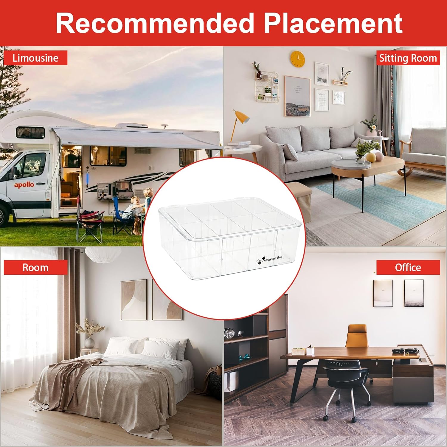 This medication organizer storage includes 8 separated compartments to store various types of items, perfect for organizer medicine, ointments, adhesive bandages, dental and other first aid supplies.