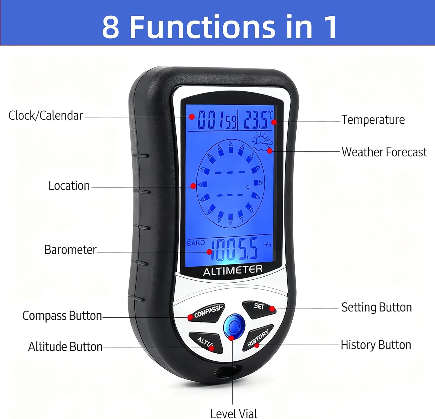 Comprehensive Functionality: The device delivers essential information such as altitude, location, air pressure, time, and temperature, ensuring you stay informed during your excursions