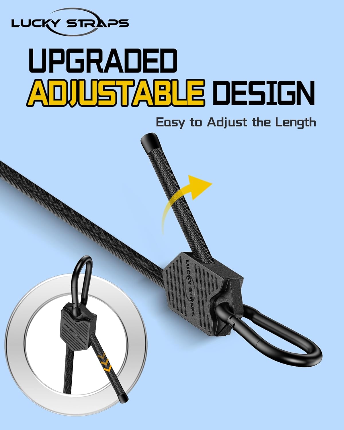 SUPERIOR ELASTICITY – Stretch up to 1.7x to 2x original size. Made of best-quality Thai latex, LuckyStraps adjustable carabiner bungee cords have greater elasticity, wider loading range, and longer lifespan.