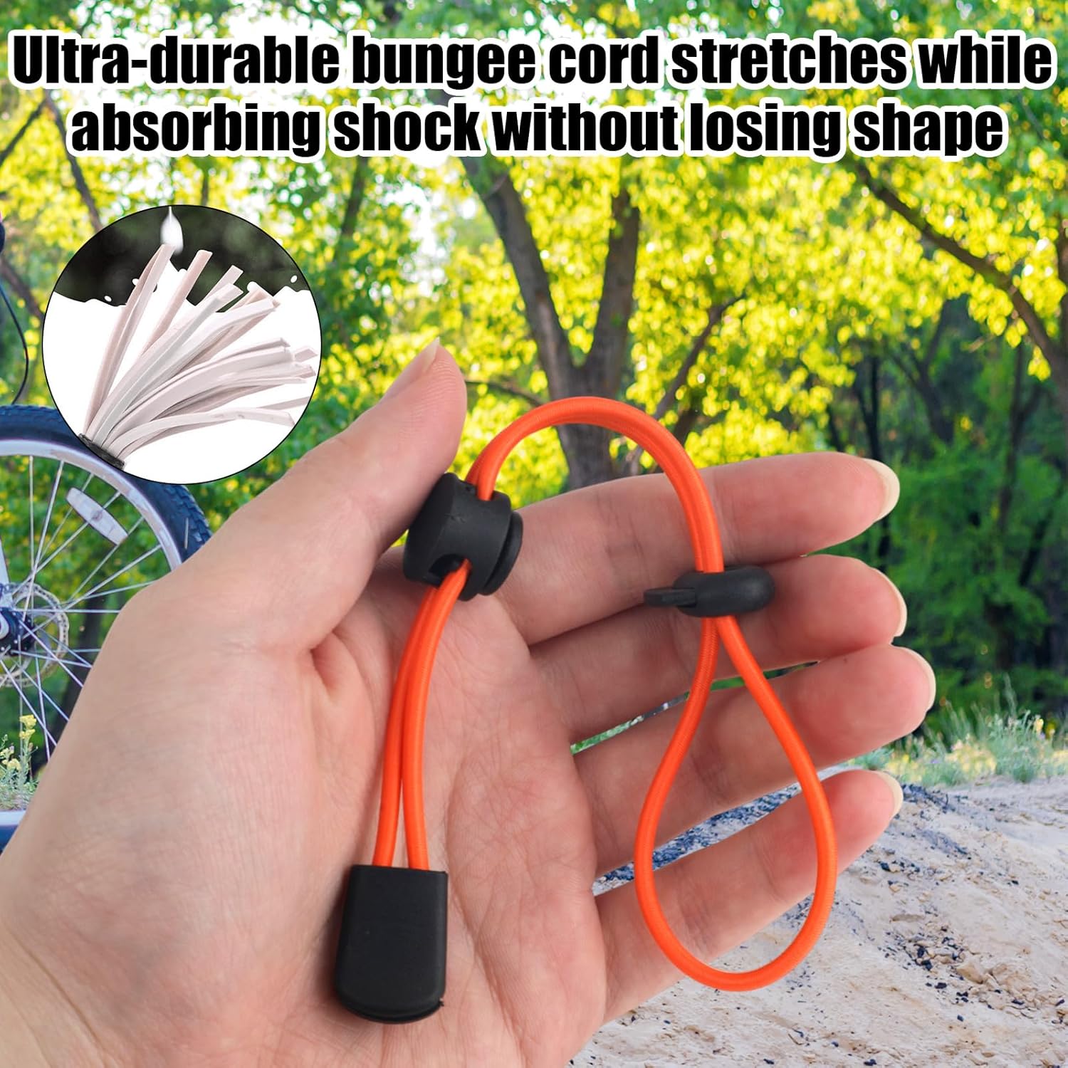 Easy To Use: These bungee cords easily attach trekking poles, walking sticks and hiking poles to your backpack without any tools. Equipped with a plastic sliding buckle, the tightness can be adjusted with one hand.