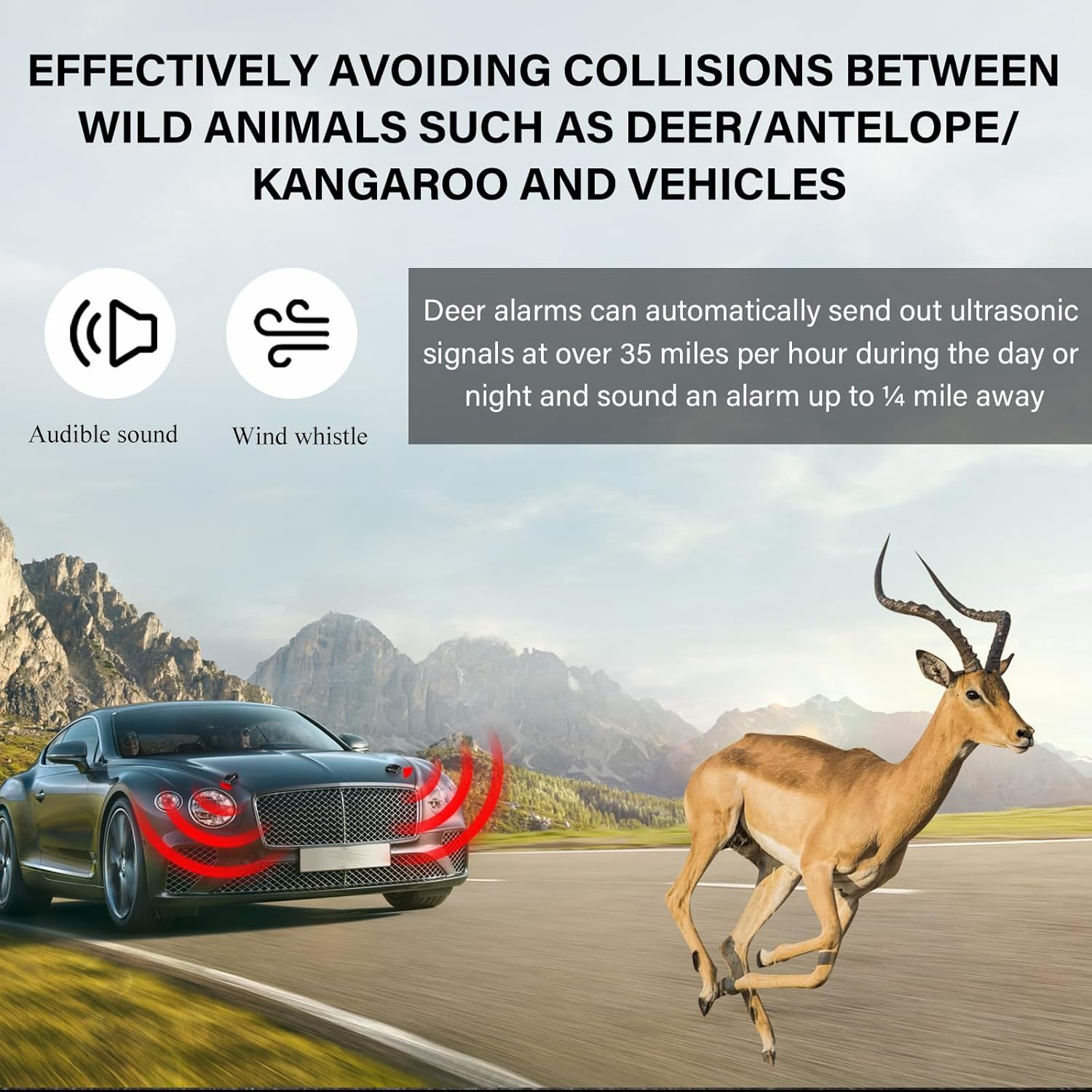Wind Driven Whistles: These car deer whistles are wind-powered and require no electricity. When the car is moving, the wind causes the deer whistles to emit an ultrasonic wave that travels at speeds of more than 35 miles per hour and sends an alert 1/4 mile away