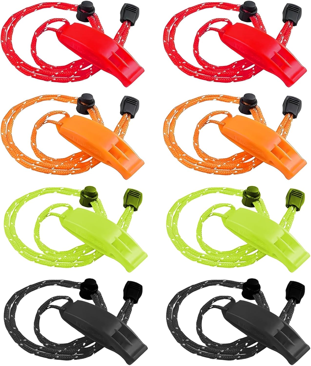 Package Included: Black, Red, Orange,Green,2 Of Each Color,Safety Whistles With Adjustable Reflective Lanyards, Suitable For Personal, Family And Team Use.