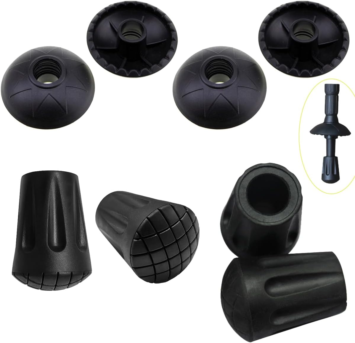 Rubber Tips for rocky surfaces. Mud Baskets for mud or sand surface.