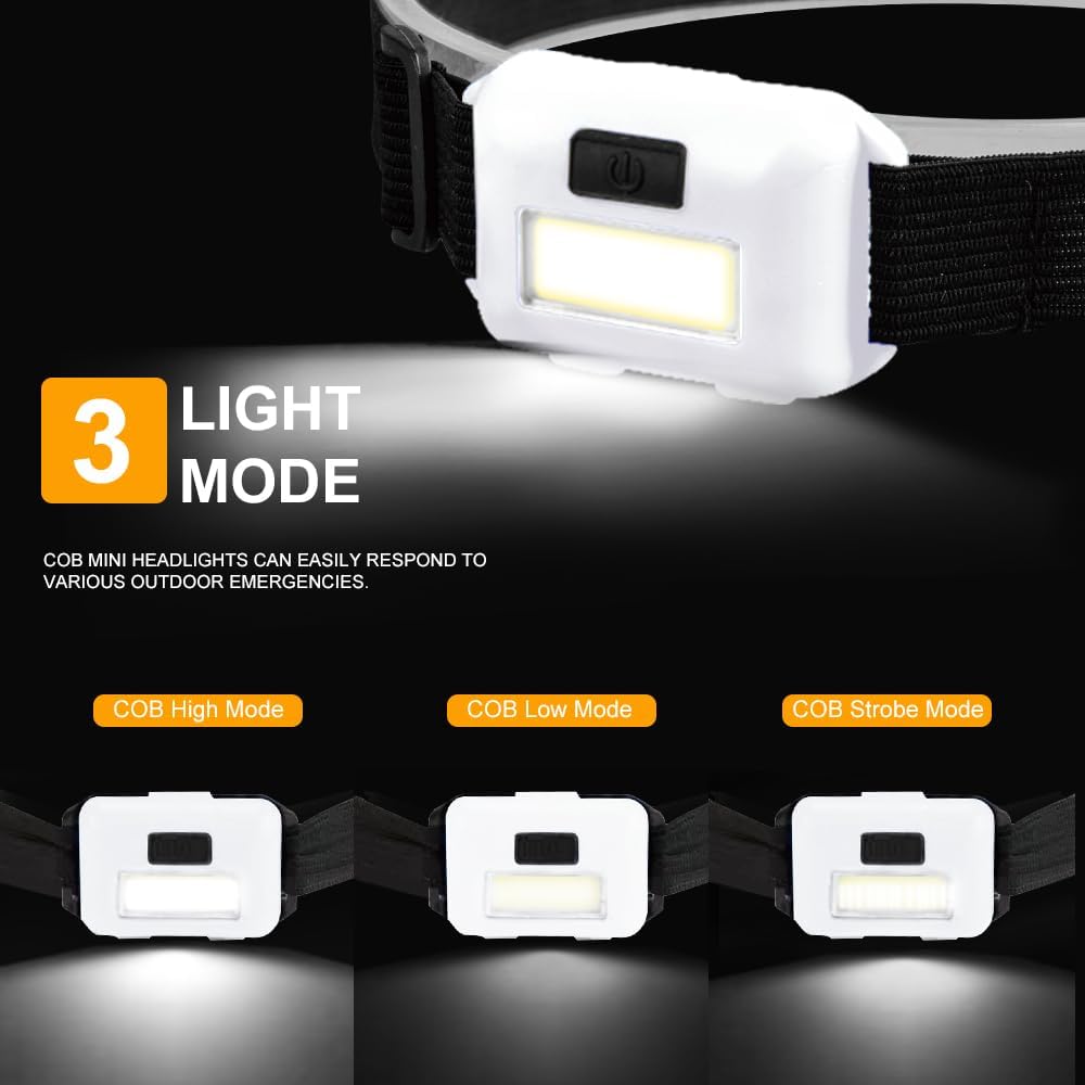 Outdoor Waterproof Headlight: The work headlamp has an IPX4 waterproof rating. The high-quality ABS shell and waterproof switch are more sealed and leak-proof, and can be used safely on rainy days. Suitable for trail running, dog walking, biking, jogging, hiking, camping, hunting, and fishing.