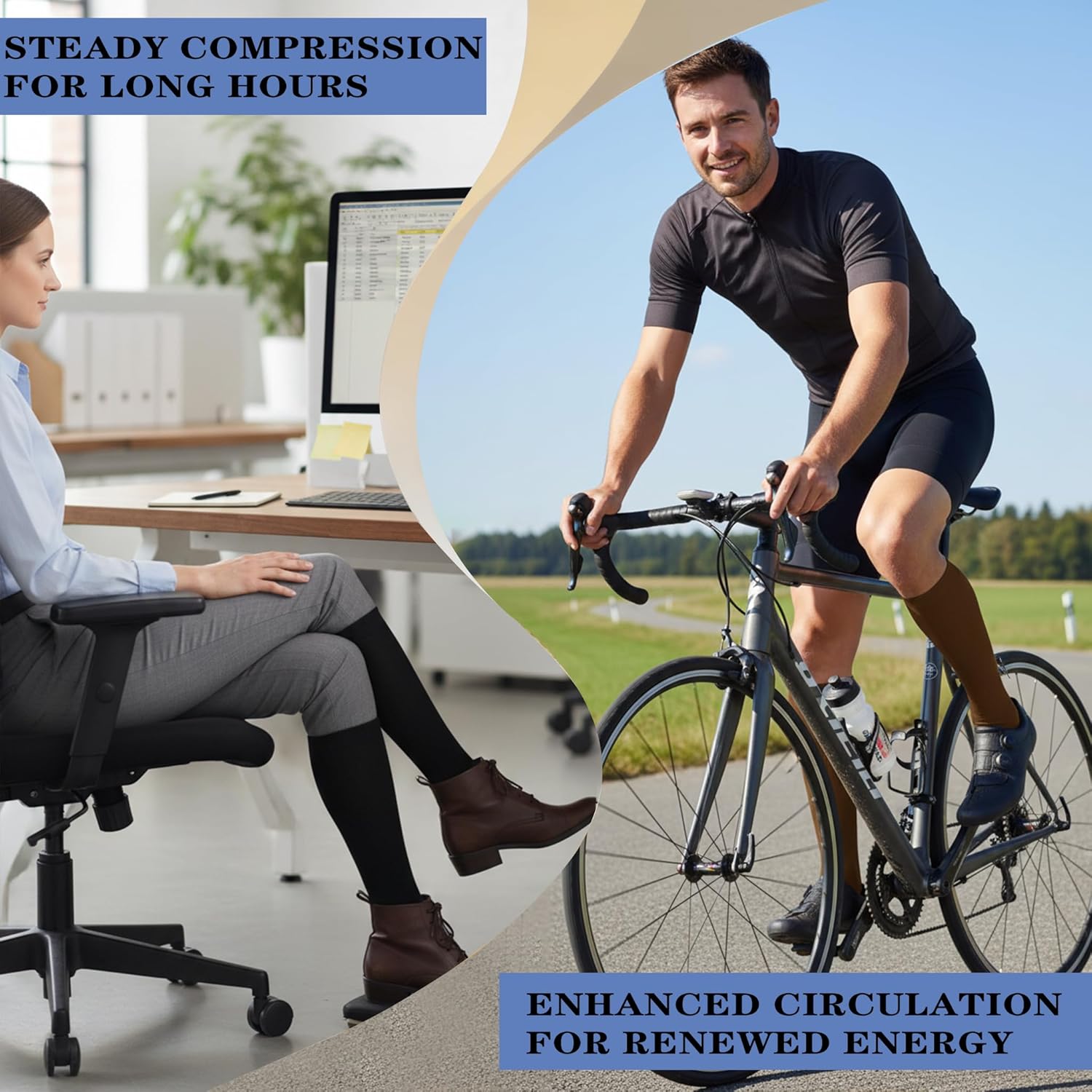 REDUCE INJURIES – Provide mild squeezing for warmness and enhance blood moving through your legs. Remove stress and stimulate every cell, relieves symptoms varicose veins and excess fluid retention. Help relieve pain & discomfort related to plantar fasciitis, Provides true graduated compression to support your legs, reduce fatigue, soreness, cramping and prevent injuries at the same time.
