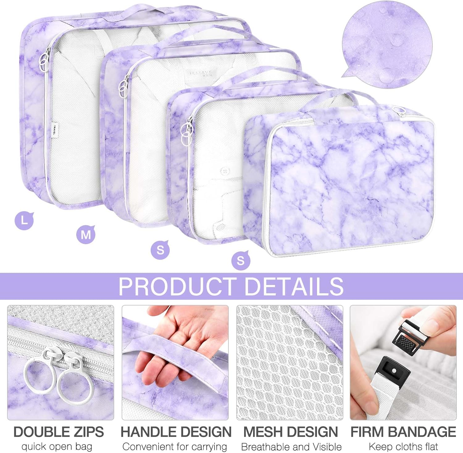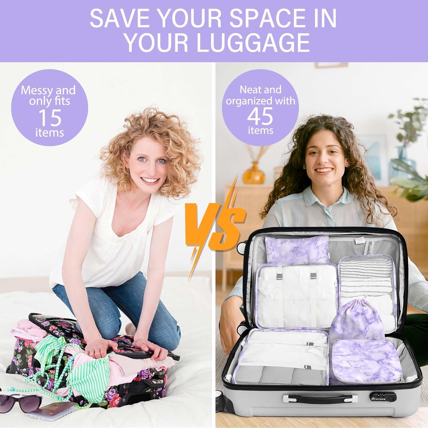 【Premium Quality】8 Set Packing Cubes were made from water-resistant ripstop nylon and ultra light weight oxford fabric, smooth corded double zippers, nice stitches. Portable, foldable, easy to storage, ensure that the packing cubes for suitcases can withstand high-density wear during travel