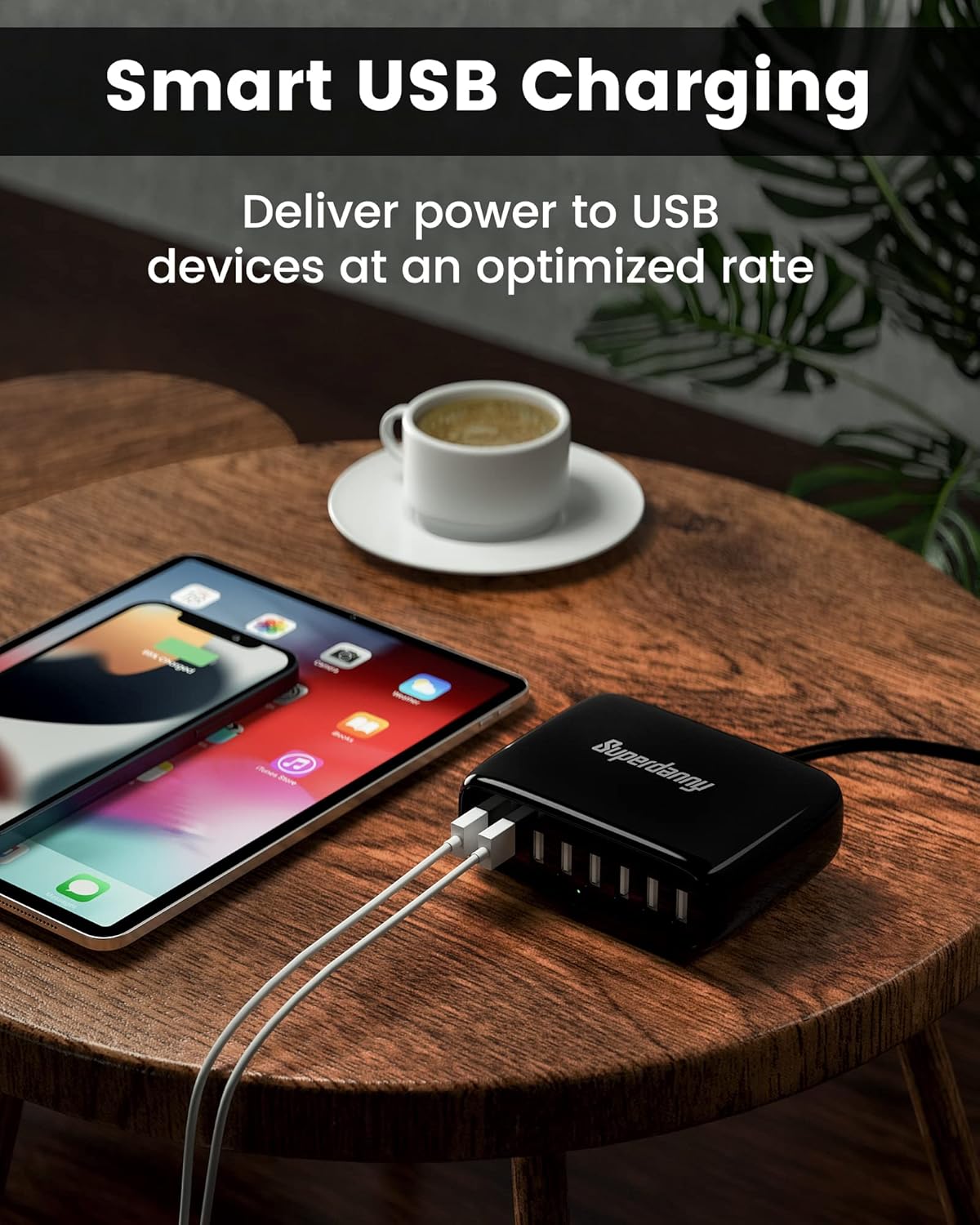 【Charge 8 Devices at A Time】This SUPERDANNY USB charging hub has 8 USB ports for charging up to 8 devices simultaneously—great for phones, tablets, headsets, smartwatches, and other USB-powered devices.