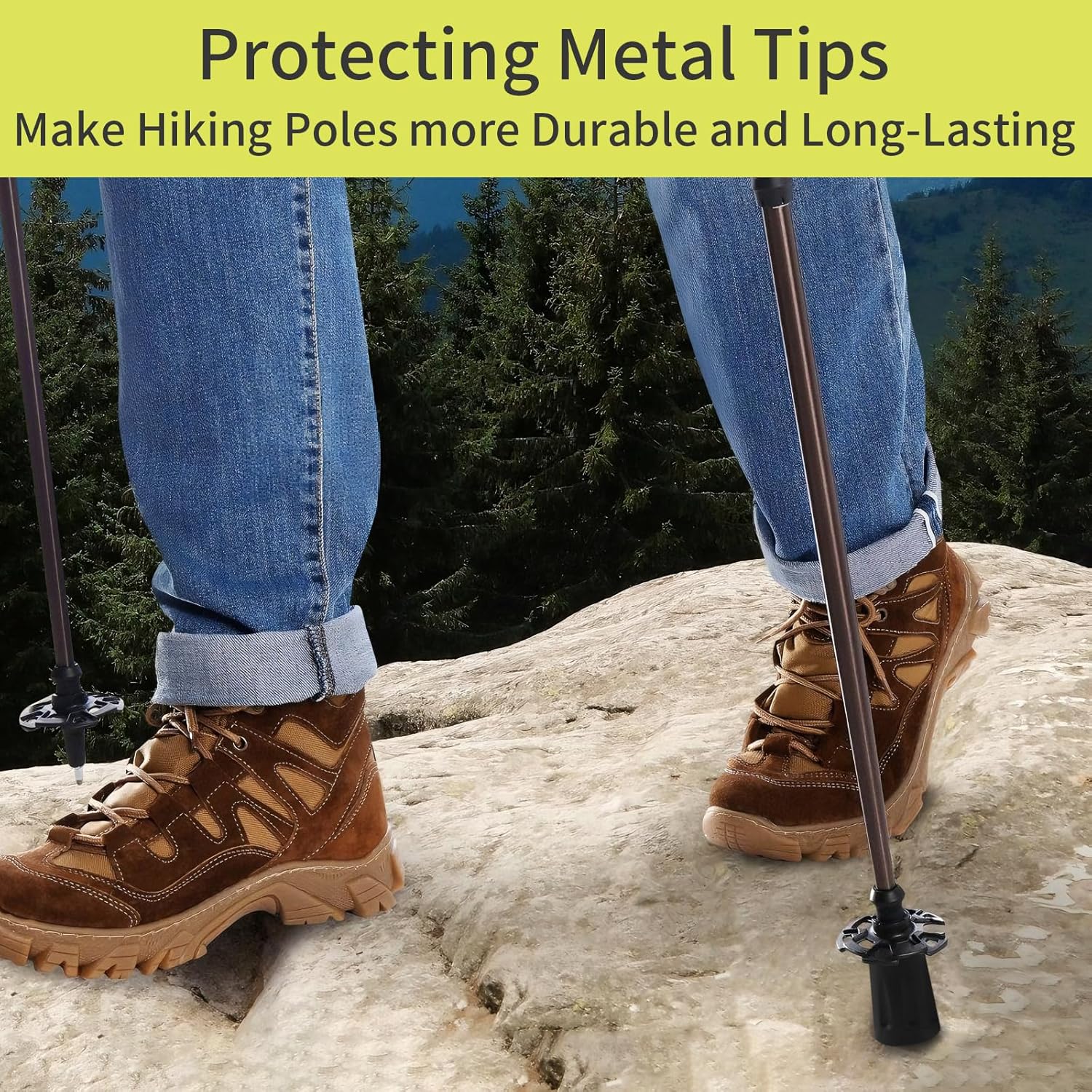 High Quality Material: Walking stick accessories rubber tips for hiking poles crafted from durable, lightweight rubber, these anti skid, wear resistant tips boost tungsten-carbide point traction and extend pole life on every hike.