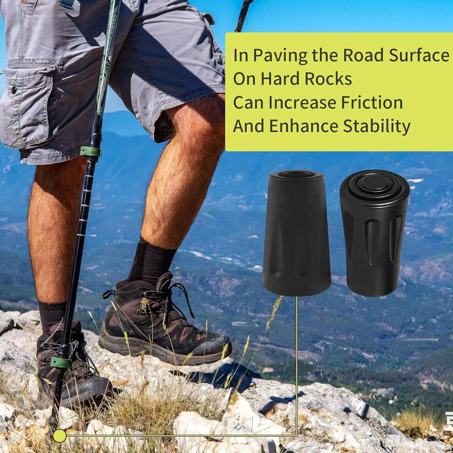 Excellent Grip: hiking stick rubber tips replaceable hiking pole anti-slip tips gain extra traction on pavement, rocky paths, or sidewalks; the textured base prevents slips and keeps your trekking poles and canes steady on any terrain