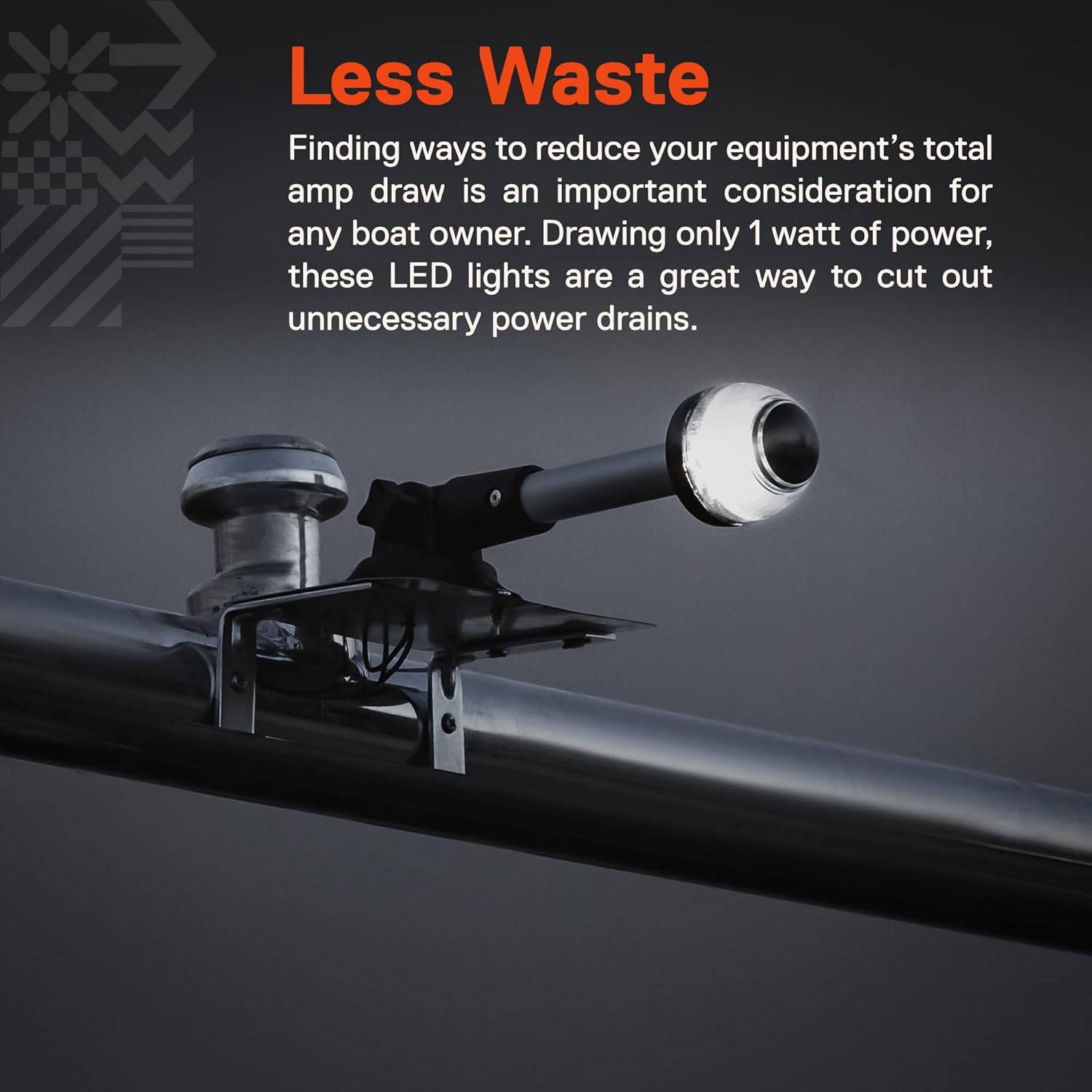 LESS WASTE – Finding ways to reduce your equipment’s total amp draw is an important consideration for any boat owner. Drawing only 1 watt of power, these LED lights are a great way to cut out unnecessary power drains.