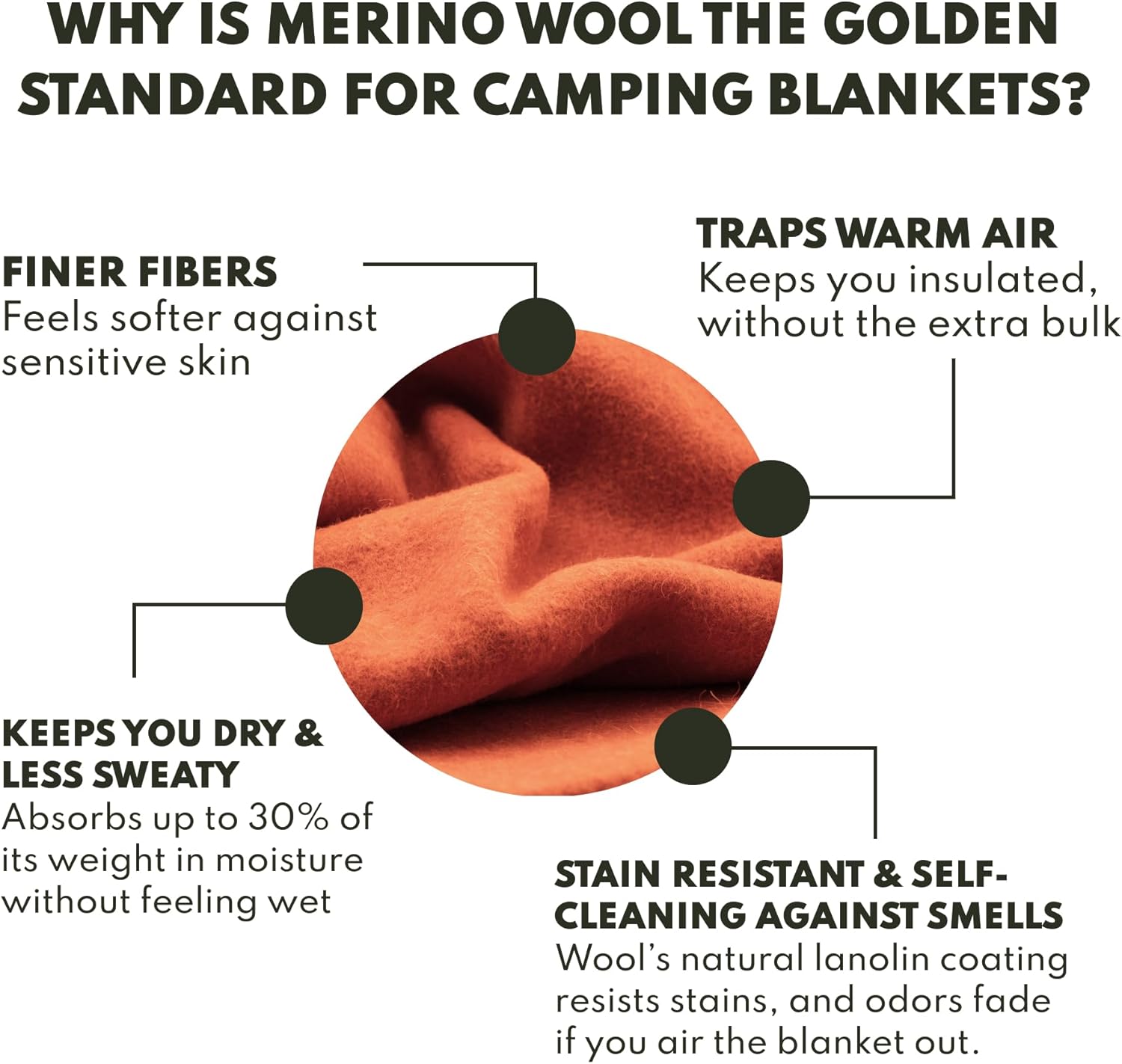 Rugged Merino Warmth: The Woolly Mammoth Woolen Company Merino Wool Blanket offers warmth with its 80% recycled merino wool and 20% dual polymer fibers. This makes it essential for camping essentials and cold weather adventures