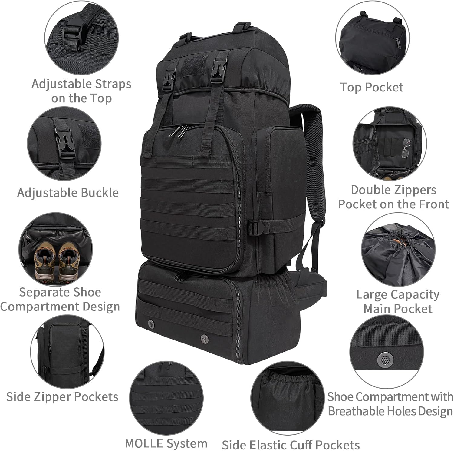 🥾 Hiking Backpack, 80L Molle Military Tactical Rucksack, Camping Backpack with Shoe Compartment, Lightweight Rucksack for Men, Water Resistant Hiking Daypack Survival Bag Hiking Bag (Black) — Review, Key Features & Current Price