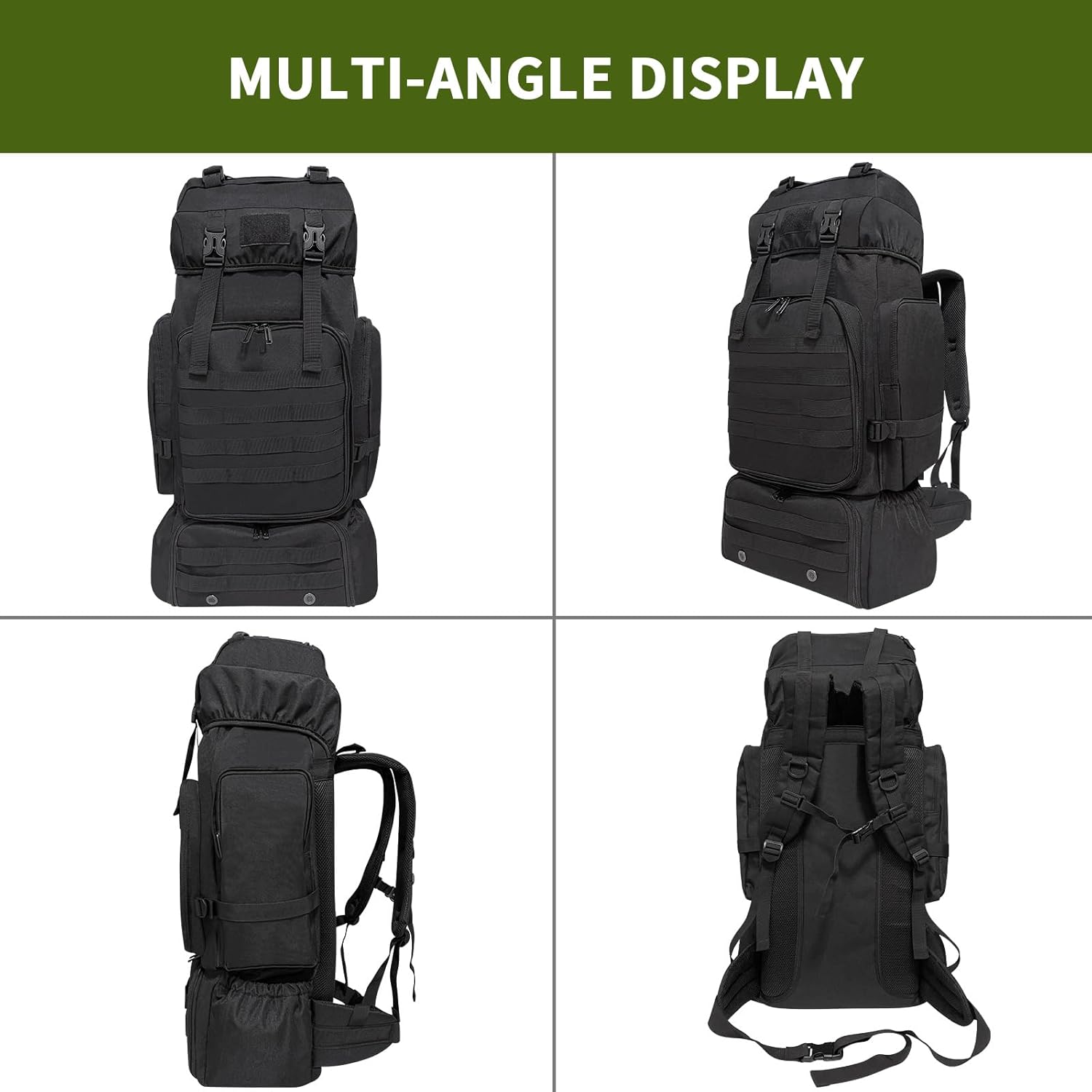 High-Quality Travel Backpack: The camping rucksack is made of 900D Oxford cloth fabric and water resistant material, wear resistant, tear resistant, anti-scratch. This tactical backpack with strong hanging system to carry more items.
