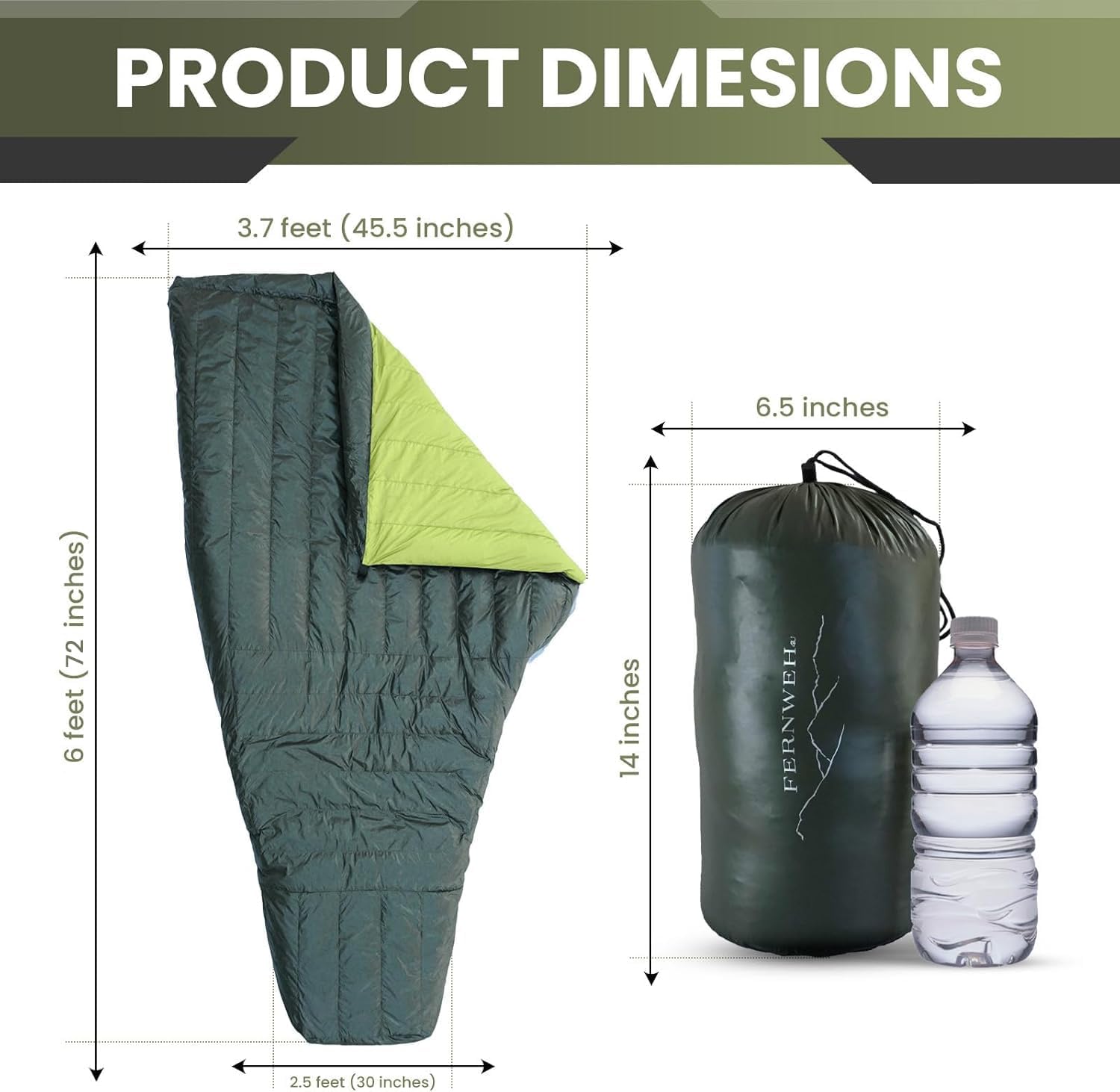 Ultra-Lightweight: Weighing ONLY 1.9 lbs, this sleeping bag camping quilt is incredibly lightweight, making it perfect for backpacking and long hikes. It won’t weigh you down, so you can carry it easily without sacrificing warmth or comfort.