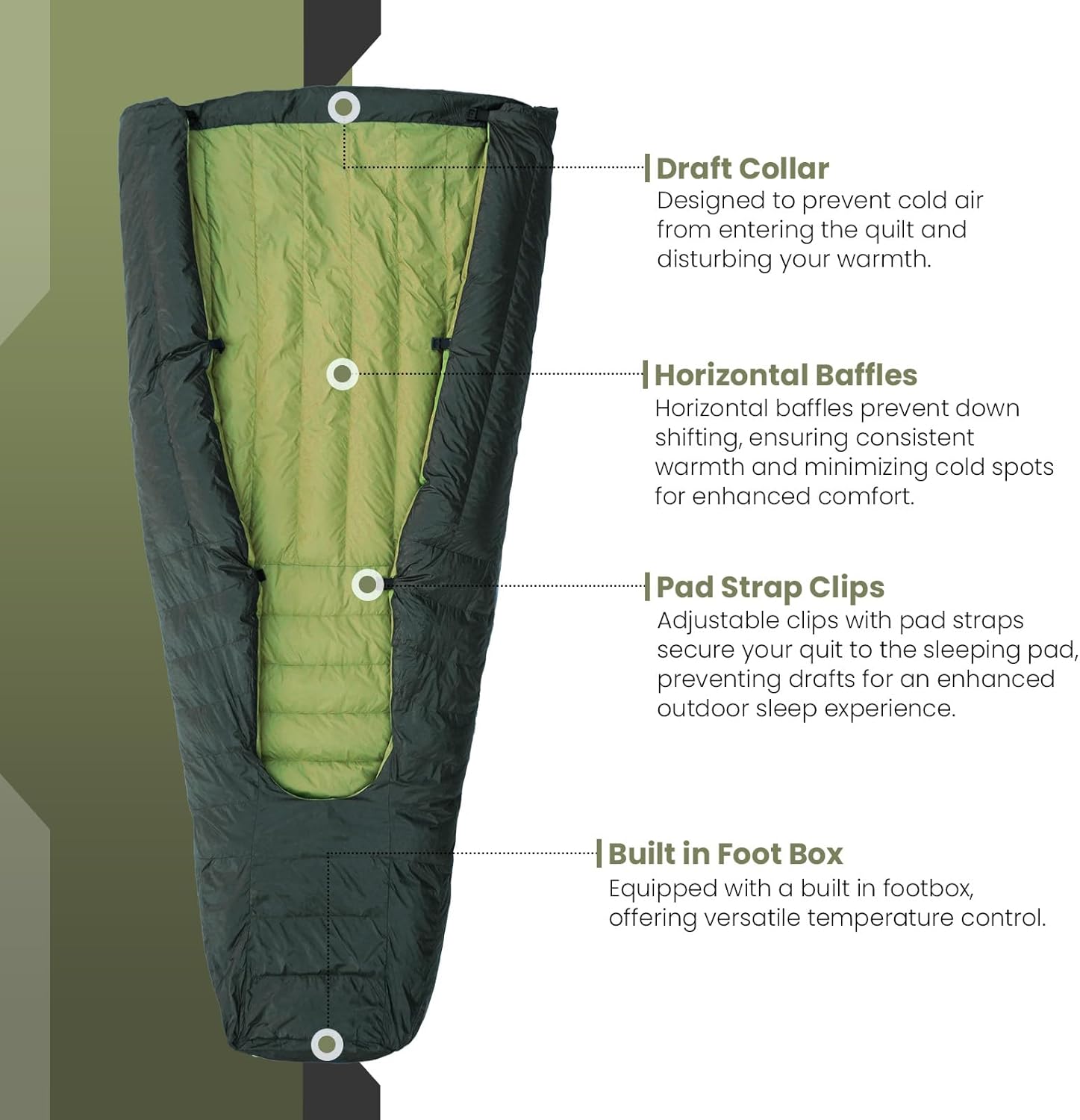 Backpacking Essential: Compact and easy to pack, this quilt is a must-have for any backpacker looking to optimize their gear. Its combination of warmth, lightweight design, and durability makes it the perfect companion for cold-weather adventures.