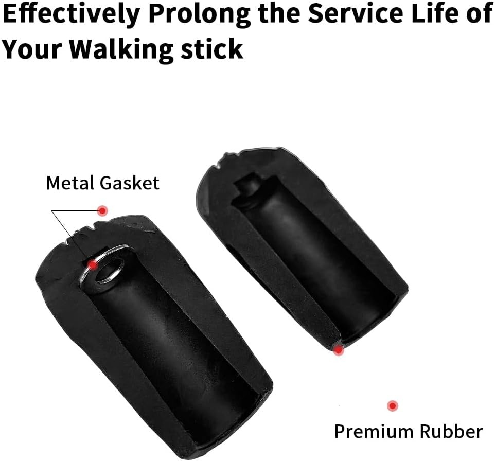 PACKAGE INCLUDES : You will receive 8pcs rubber tips for walking sticks, very easy to replace your old cane tips, no extra tools needed. high cost performance hiking walking stick accessories- get the only proper rubber tips for your next hiking places.Walking rubber buffer for your walking and walking sticks.
