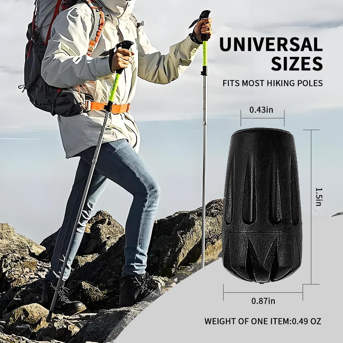 UNIVERSAL : Our trekking pole tips can be used as a cane tip, or to replace walking stick, ski pole or crutch tips. They have an 11mm (0.43in) diameter that provides a snug fit for most hiking rods.